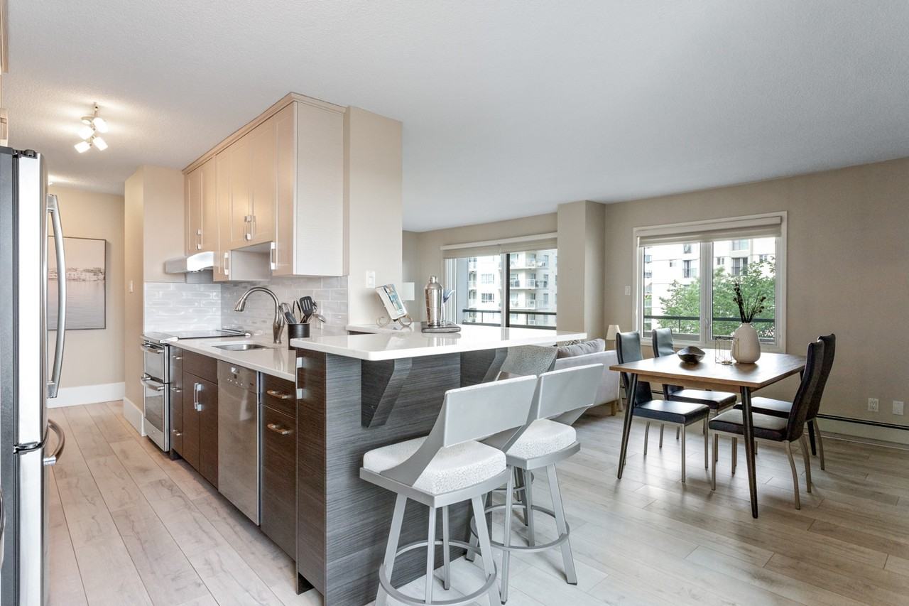 https youriguide com 702_9720_106_st_edmonton_ab Welcome to the Marquis! This bright and modern condo is located in downtown Edmonton, steps to the river valley, Alberta Legislature Building and many walking paths. City Center, Grant MacEwan, U of A, shops, restaurants and more are also located minutes away. This bright 1 bed 1 bath fully furnished, 763 sq foot condo offers: •Open living and dining area •Renovated kitchen with stainless steel appliances, wine fridge, tile back splash and quartz counter tops •Breakfast bar for easy entertaining •In suite laundry •Renovated bathroom with heated floors •Luxury vinyl plank flooring throughout •Upgraded furnishings •Covered and secured parking stall •All utilities, Wi-Fi and cable included with rent Building amenities include: •Exercise room •Games room •Basketball and tennis court •Lots of visitor parking •Secure bike storage •On site building manager This building does not allow pets