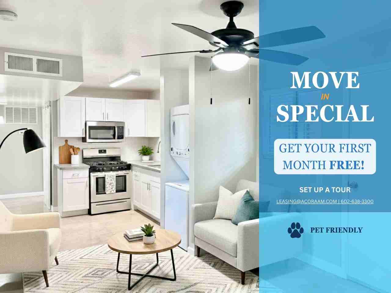 Coming Available May 8th, 2026! *MOVE IN SPECIAL! 1ST MONTH FREE WHEN SIGNING A 13 MONTH LEASE OR AN 18 MONTH LEASE!* This is a First Floor Unit! The Michelle on Roosevelt – Gorgeously Updated 2 Bed 1 Bath with Large Fornt Patio and In-Unit Washer & Dryer - Downtown Phoenix / Roosevelt District Living! PLEASE ONLY INQUIRE IF YOU MEET THE FOLLOWING REQUIREMENTS: -No Smokers -No Crimes Against Children -No Evictions or Bankruptcies Within 60 Months of Application Date -Household Income of 3x the Monthly Rent is Needed. Proof of Income is Required -Acora Asset Management LLC Processes Full Credit & Criminal Background Checks on All Applicants & Complies With All Fair Housing Laws Take a Virtual Tour! : https my matterport com show ?m=nmAdUW1n3Xd *Virtual Tour is of Similar Unit. Units Do Not Come Furnished. Photos are Digitally Staged Using AI Rendering.* ABOUT THE PROPERTY Enjoy urban living steps from The Roosevelt District’s dining, nightlife, and arts scene. The Michelle on Roosevelt is moments from ASU’s Downtown Campus, the Light Rail, Banner Medical Center, Sky Harbor International Airport, and so much more! UNIT FEATURES -Sparkling quartz countertops -Epoxy concrete flooring -Modern light fixtures & ceiling fans -In-unit washer & dryer -Updated kitchen & bathroom -Central A/C & heating COMMUNITY AMENITIES -On-site laundry -Gated entry -Smoke-free property PET POLICY -Pet-friendly community -$25/month -One-time $150 pet fee -Pet charges are flat, not per animal -Limit of up to 3 pets UTILITIES -Residents responsible for APS Electric -Residents responsible for Southwest Gas -Utility Reimbursement: $75/month (Water, Sewer, Trash) TERMS & PRICING -Rent: $1,295/month -Security Deposit: $1,000 (on approved credit) -Application Fee: $65 per applicant -Resident Services Charge: 2% of monthly rent -Renter’s Insurance: Required -Lease Terms: 12, 13, or 18 months For further information, please call 602-638-3300 or apply online at AcoraAM. com Offered by Acora Asset Management, LLC Designated Broker: Colin Ralls NOW ACCEPTING APPLICATIONS!