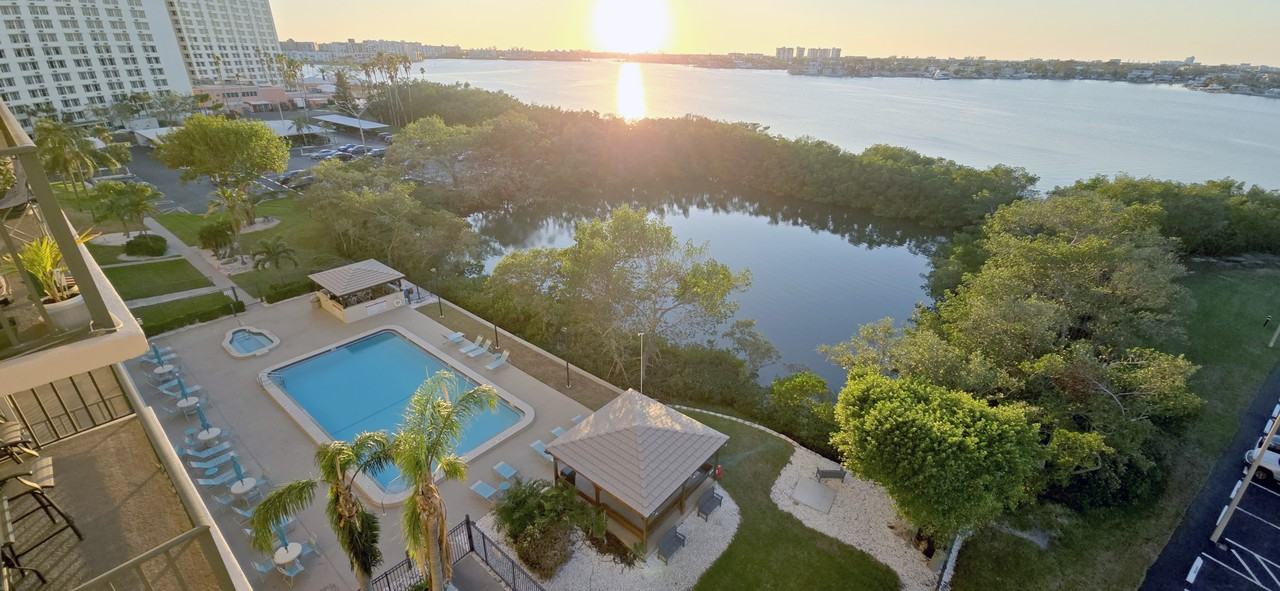 Welcome to Chateau Towers in beautiful South Pasadena, where stunning sunsets and panoramic water views create a serene waterfront haven. This 7th-floor, 2-bedroom, 2-bathroom condo offers some of the most breathtaking vistas of Boca Ciega Bay. From your private covered balcony, enjoy colorful sunsets over the bay and the sparkling pool below—a perfect backdrop to your tranquil lifestyle. Inside, the spacious open floor plan ensures water views from every room. The primary suite features two closets, including a walk-in with built-in shelving, and a mirrored walk-through leading to the en-suite bathroom. The second bedroom, conveniently located near the guest bathroom with a tub/shower combination, offers privacy and comfort for residents or guests. Chateau Towers boasts resort-style amenities designed for an active lifestyle: • Heated pool and separate hot tub • Grilling and picnic area • Steam room • Fully equipped fitness center • Game room with pool table, air hockey, ping pong, shuffleboard, and foosball • Kayak/paddleboard launch area for exploring calm Boca Ciega Bay • Modern laundry facilities on the first floor • Community room for gatherings and events • A charming library for quiet relaxation Situated in a prime location, Chateau Towers offers unbeatable convenience. Publix, parks, and tennis courts are within walking distance, while the stunning Gulf beaches are just minutes away by car, bike, or even on foot. The SunRunner public transit system provides seamless access to vibrant downtown St. Petersburg and St. Pete Beach. For travelers, Tampa International Airport is only 30 minutes away. Rent includes essential utilities such as water, trash, and internet, ensuring a stress-free living experience. An assigned-covered parking spot is also provided, and additional parking is available for your convenience. These thoughtful inclusions enhance the overall ease and enjoyment of living at Chateau Towers. The lease requires a one-year commitment with a background check and proof of income. Upon signing, the first and last month's rent, along with a $2,000 security deposit. Please note that this property is non-smoking and does not allow pets or motorcycles. Don’t miss this opportunity to enjoy waterfront living at its finest in a world-class, all-ages community. Contact us today to schedule your private showing and experience the lifestyle of Chateau Towers!