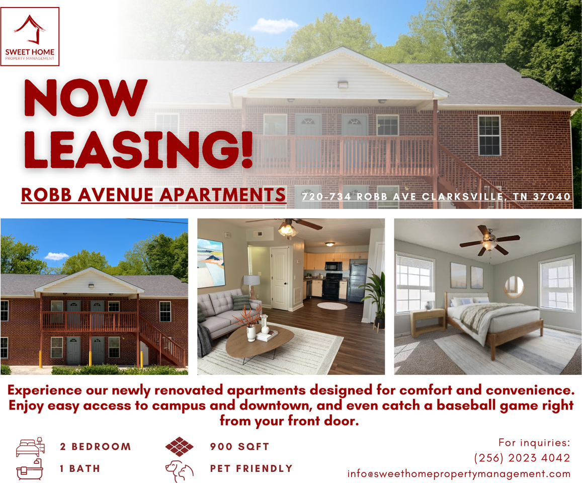 Discover your perfect home just steps away from Austin Peay State University and close to downtown Clarksville! This 2-bedroom, 1-bathroom apartment offers an unbeatable location and modern conveniences designed for your lifestyle. Highlights Include: * Prime Location: Enjoy easy access to campus, downtown, and even catch a baseball game from your front door. * Modern Updates: Fresh paint, stylish flooring, updated appliances, and an in-unit washer and dryer in every apartment. * Pet-Friendly: Small pets are welcome—because your furry friend deserves a great home too! * Parking Made Easy: Enjoy the convenience of an on-site parking lot with no additional fees. * Utilities Simplified: $60 monthly reimbursement covers water, trash, and pest control. This apartment offers the ideal mix of comfort, convenience, and affordability, with lease terms of 12 months. Units are updated, but finishes and layouts may vary. Please call 256-203-4042 for more information!