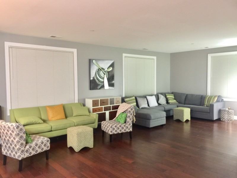 - Open concept kitchen, living room and dining room area