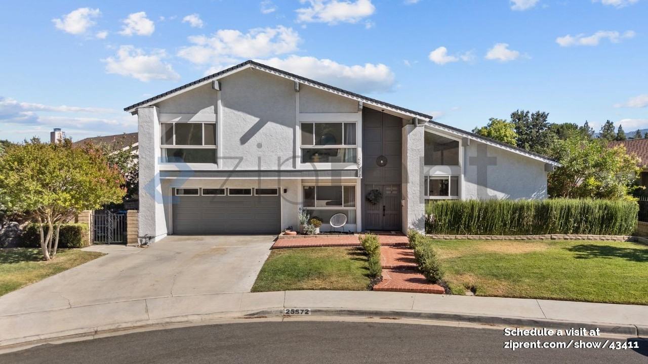 This property is available. Please inquire on this site to schedule a showing. Welcome to your dream home at 25572 Vía Brava in Santa Clarita, CA. This stunning residence boasts a modern design with an open and airy layout, perfect for comfortable living and entertaining. The spacious living area features soaring ceilings and large windows, flooding the space with natural light. The sleek kitchen is equipped with stainless steel appliances, ample cabinetry, making it a chef's delight. Adjacent to the kitchen, the dining area offers a picturesque view of the beautifully landscaped backyard. Step outside to the expansive patio and lush green turf, ideal for outdoor gatherings or simply relaxing in the California sunshine. The primary suite is a true retreat, complete with a luxurious ensuite bathroom and generous closet space. Additional bedrooms are well-appointed, offering flexibility for guests or a home office. Located at the end of a quiet cul-de-sac, this home offers direct access to the scenic paseo path—just a one-minute walk to the large community pool with a diving board, tennis and pickleball courts, and a gated park and playground. The pool also hosts an impressive and affordable summer swim team program for kids. HOA fees for the amenities are included. Nestled in a sought-after neighborhood, this home is close to parks, schools, and shopping, providing convenience and an exceptional quality of life. Don't miss the opportunity to make this beautiful property your new home. Monthly electricity amount of $250 per month. (Prior to solar, SCE bills averaged $370 per month). Please note, this home will be rented unfurnished. Available: NOW Heating: ForcedAir Cooling: Solar Appliances: Refrigerator, Range Oven, Microwave, Dishwasher Laundry: In Unit Parking: Attached Garage, 2 spaces Pets: Sorry, no pets allowed Security deposit: $4,750.00 Included Utilities: Landscaping Additional Rent/Utilities Flat Fee: $300.00 This property has a home security system. Disclaimer: Ziprent is acting as the agent for the owner. Information Deemed Reliable but not Guaranteed. All information should be independently verified by renter.