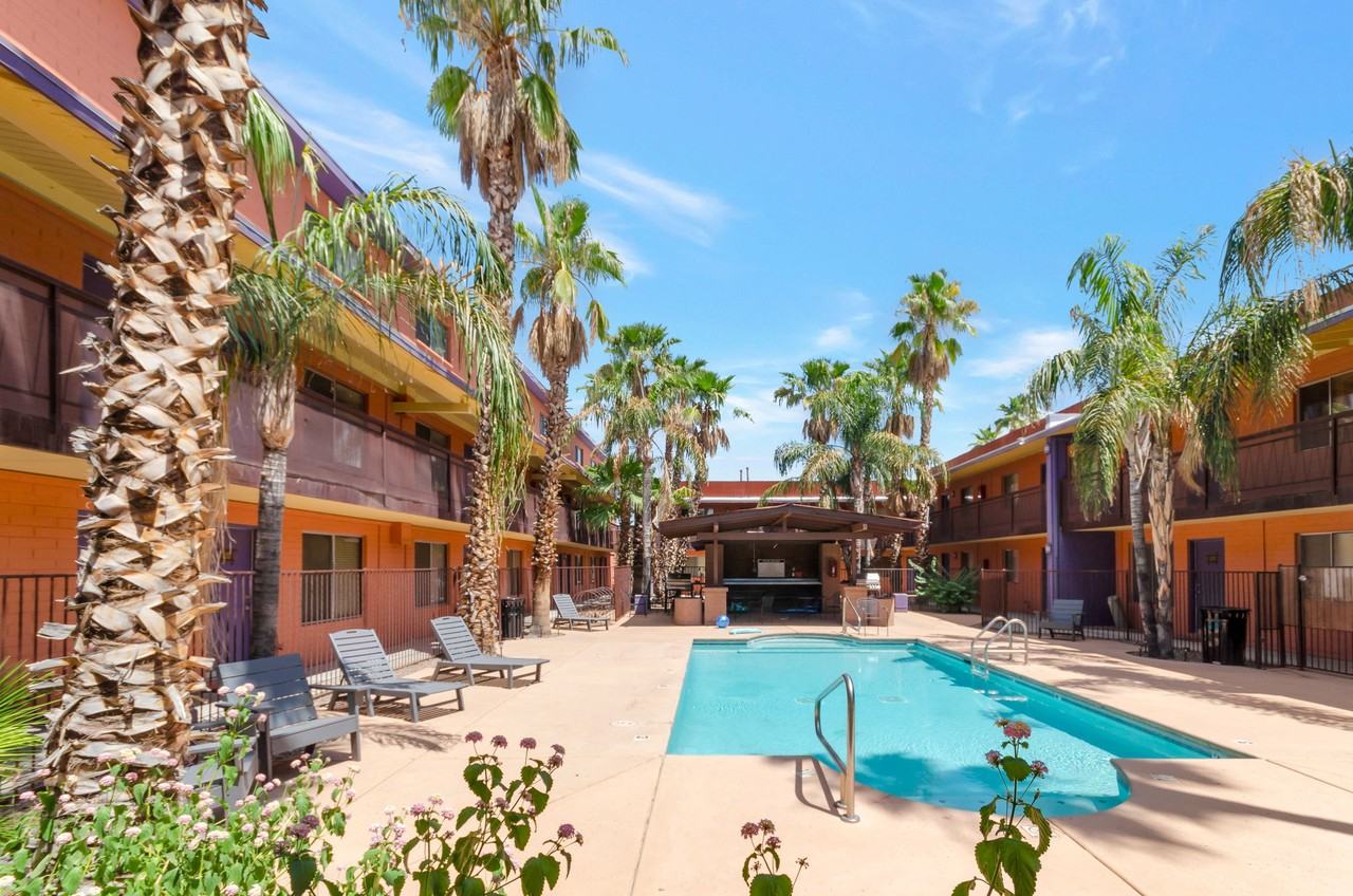 Remodeling & updating of this open floor plan on this end-unit include wood tile flooring, large kitchen island with granite countertops, new cabinets throughout. 2bdrm is located in a gated 10th Street Condominiums, 2 parking spots, it is within walking or biking distance of the University of Arizona, just 4 blocks away, and close to shopping, entertainment & downtown. The gated complex offers lush landscaping, a sparkling pool, a ramada, a BBQ area and much more. One-Time Admin Fee: $300. 1% Administrative Fee monthly. Resident Benefits Package: $39/month. Helping Heroes Discount Available!