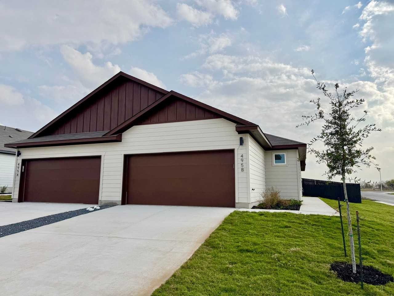 This beautifully designed 3-bedroom, 2-bathroom duplex features just over 1300 sq. ft. of ample living space, boasting an open-concept layout, hardwood laminate flooring, and soaring 11-foot ceilings. Large windows throughout provide excellent natural light in every room. A stunning chefs kitchen includes; stainless steel appliances, granite counter tops, large kitchen island, stylish tile backsplash, and sleek white cabinetry. The spacious primary bedroom, located on opposite end of the home from the secondary bedrooms, features an ensuite bathroom including granite counter-tops, double vanity, generous cabinet storage, and a luxurious walk-in shower. The expansive walk-in closet is sure to impress, offering more than enough space for all your needs. Just off the garage, you’ll find a practical and stylish drop zone—perfect for organizing your daily essentials. Every inch of this home is designed with functionality in mind and smart storage solutions throughout. Start and finish your day on the private patio looking out to a spacious, fully fenced backyard. Perfect for enjoying the breathtaking open skyline. Located just 15 minutes south of downtown Austin via I-35, this prime location also offers easy access to Kyle, San Marcos, and New Braunfels. Don't miss this opportunity to experience living the perfect blend of style, comfort, and convenience at Emma Park!