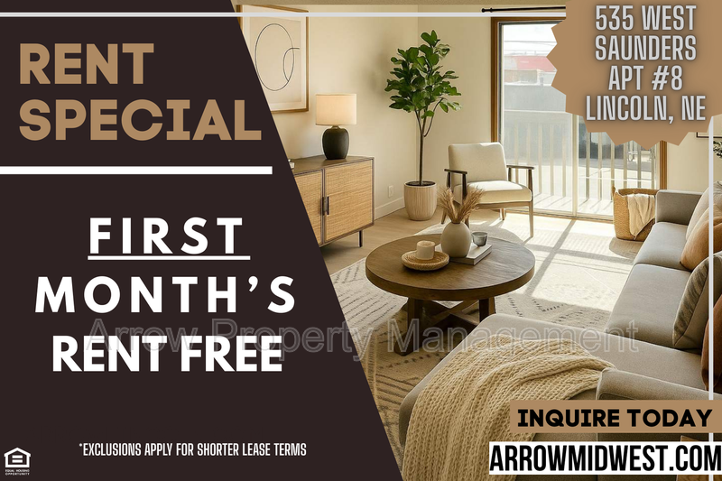 Welcome to 535 W Saunders, located in the vibrant city of Lincoln, NE. This modern apartment offers a comfortable living space with two bedrooms and one bathroom. Step inside and be greeted by new flooring and fresh paint, creating a clean and inviting atmosphere. The kitchen is equipped with a convenient dishwasher, making mealtime a breeze. Situated near I-80, this prime location provides easy access to all that Lincoln has to offer. Additionally, residents can take advantage of the shared laundry facilities, ensuring that laundry day is hassle-free. Don't miss out on the opportunity to call 535 W Saunders home. Please visit Arrowmidwest. com to schedule a tour and experience the convenience and comfort this apartment has to offer. Additional information- Pets negotiable with a $150 non-refundable pet deposit and monthly fee per pet. Unlimited laundry use at $10/month per tenant and Shared Utility Fee at $28/month per tenant. Tenant pays for electric; landlord pays for water and trash. All Arrow Property Management residents are enrolled in the Resident Benefits Package (RBP) for $30.00/month which includes liability insurance, credit building to help boost the resident’s credit score with timely rent payments, our best-in-class resident rewards program, and much more! More details upon application. Amenities: off-street parking, dishwasher, balcony, shared laundry facilites, stainless steel appliances, pet friendly