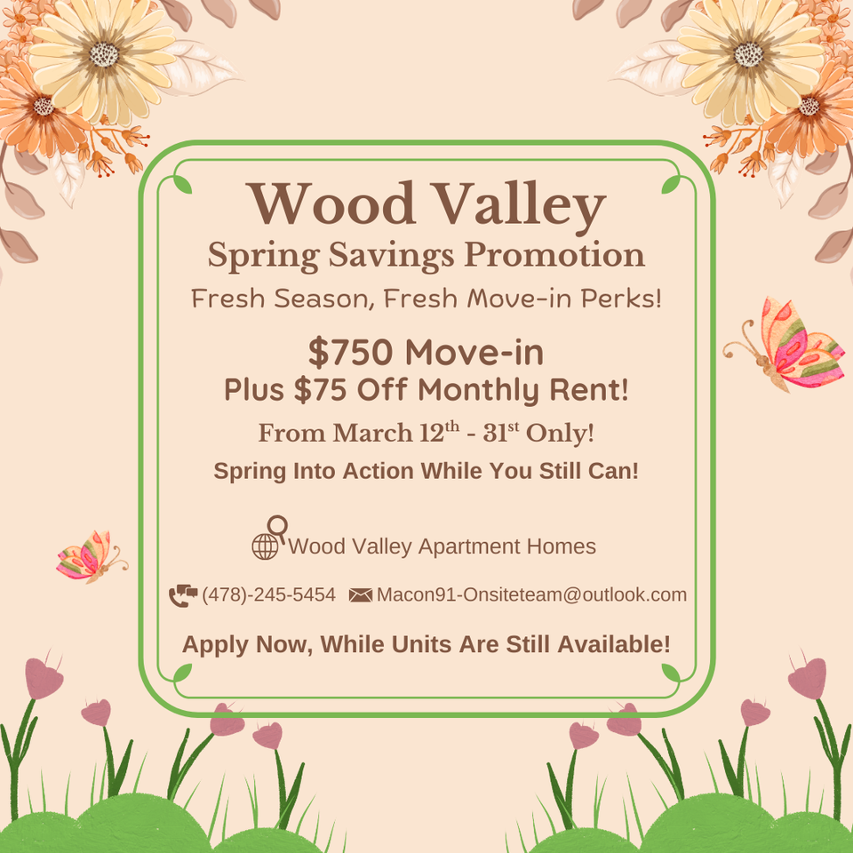 *Rent and Deposit amounts reflect the Spring Savings Promo and are only valid from 3/12/26-3/31/26!* Townhome layout Cable & high-speed internet ready Central air conditioning & water heater Kitchen includes refrigerator, oven, stove, dishwasher Newer doors, walls, floors, fixtures, lighting Washer/dryer hookups Tub & Shower Hall Closet New renovations underway 2024-2025 Adjacent to undeveloped woodlands (fresh air!) Close to shopping, dining & entertainment Easy highway access & minutes from Downtown Plenty of parking Apply through the link below https propertymanagement-office managebuilding com Resident public rentals?bedrooms=0&bathrooms=0&location=31211