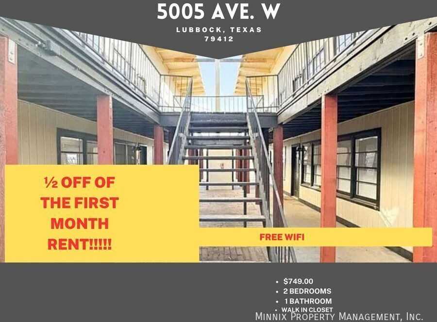 Lubbock, TX | Lubbock ISD | 2 Bed 1 Bath Home For Rent | Special 1/2 off first months Rent A charming 2-bedroom, 1-bathroom apartment! This upstairs unit is equipped with a refrigerator and a stove/oven, perfect for those who love to cook. The apartment also features central heat and air conditioning, ensuring your comfort in all seasons. The unit is pet-friendly, welcoming both dogs and cats. The convenience of having water, sewer, and trash included in the rent, along with gas, makes this apartment a great deal. The tenant is responsible for the electric bill. The apartment also offers a zero deposit move-in option, making your transition smoother. Parking is available for residents, adding to the convenience. The apartment also boasts a ceiling fan and a walk-in closet, providing ample storage space. As an added bonus, free WIFI is included, perfect for work or leisure. This apartment requires a one-year lease. Experience comfortable living at 5005 Ave W. #7. Offered by Minnix Property Management. This home is available for a 12-month lease. This property is available for self-guided tours! 7 am to 9 pm, 7 days a week! Pets are welcome with a $400 refundable per pet deposit. We comply with Fair Housing Guidelines when it comes to Service Animals and Emotional Support Animals. Vacant properties are held no more than 21-days. A deposit is required to hold the property. Renter’s insurance is required for all properties. $24.99/Month Minnix Resident Benefit Package: $0 Security deposit when using our deposit alternative that reduces your move in costs. You may still use a traditional cash security deposit. Free Security Deposit Review - Don't agree with the charges at move out? Get a free independent review of your charges. Rent Plus - Credit reporting for on-time rent payments to build your credit! Automatically enrolled, opt out available. Additional fees apply. Flexible Payments - Administered by Flex Pay when you want so you can do more of what you want. Flex pay is built into your online portal that pays your rent on the first and allows you to pay back on your terms. Additional fees apply. Free Online eCheck - Pay your rent only with no additional fees if using the eCheck option. TXU Energy - $50 Visa gift card when you choose TXU as your energy provider using the promo code "RENT" through this link: https www txu com electricity-plans txu-elease?PromoCode=RENT Rent Check - Conveniently and easily document the condition of your residence when requested. DAVE - Get an advance up to $500. Get more money to help cover rent, fill your tank, tackle your to-do list, or take advantage of a now-or-never opportunity. Missed Appointment Fee Reimbursement - Missed that maintenance appointment? No worries, you may be eligible for reimbursement. Lockout Reimbursement - Reimbursement coverage just in case you do lock yourself out. Free Drain Maintenance Packs - Get a free supply kit to help with clogged or slow drain issues. Move-in Promise - Peace of mind that all maintenance requests made in the first 30 days are completed in 2 weeks! Overnight Stay Reimbursement - Maintenance issue force you to stay in hotel? Reimbursement available! Moving Concierge - Get personalized help for your move in or move out and more! Accidental Damage Coverage - Get $1000 back on accidental damages to the property! Early Termination Options In this ever-changing world, we know that things change. Minnix Property Management works with you ..