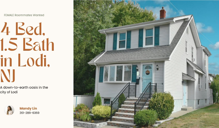 Property Id: 2283967 Beautiful, fully furnished home in Lodi, NJ offering private rooms for rent in a clean, calm, and respectful living environment. Ideal for responsible female roommates who value cleanliness, consideration, and a peaceful shared space. Room Options & Pricing: • Master Bedroom: $1,300/month • Bedroom B: $1,100/month • Bedroom C: $1,100/month • Bedroom D: $900/month The home is move-in ready and thoughtfully furnished, including a comfortable common area with couch, coffee table, and TV. The kitchen is fully equipped, and shared spaces are kept tidy and welcoming. Features & Amenities: • Fully furnished house • In-unit washer & dryer • Air conditioning included • Shared kitchen & common areas • Quiet, safe residential neighborhood • Street parking available Looking for clean, respectful, and considerate female roommates who are mindful of shared spaces and each other. This is a peaceful home, not a party house. Conveniently located near major highways, shopping, and public transportation. If you’re interested, please message with a brief introduction about yourself.
