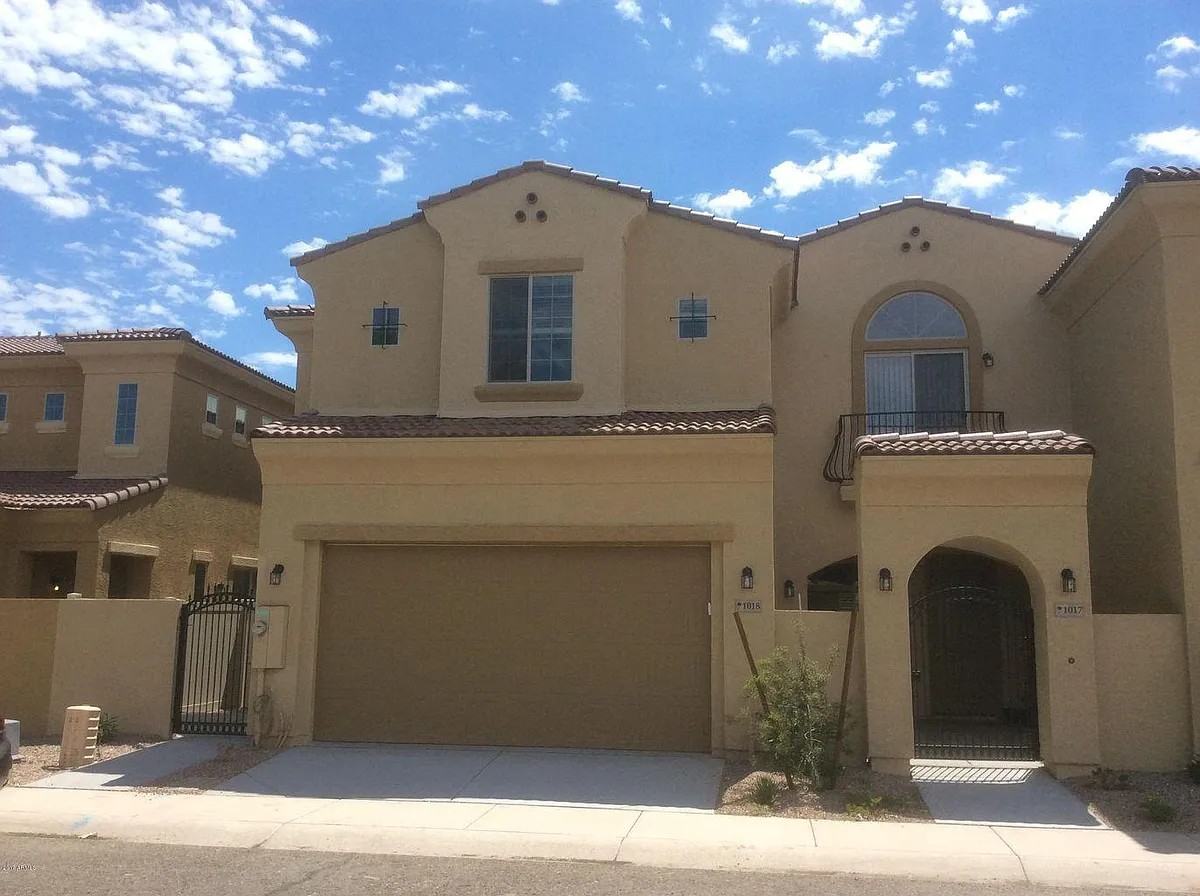 Discover this available townhome! Built in 2016 it features 4 bedrooms, 3.5 bathrooms, and dual primary suites—one upstairs and one downstairs—for added flexibility. The open-concept design includes granite countertops, upgraded cabinets, stainless steel appliances (with refrigerator), in-unit washer/dryer, and tiled flooring. Enjoy your private concrete patio with views of the greenbelt, clubhouse, and pool. The attached two-car garage offers straight-in access with no shared driveway. Prime location near light rail, freeways (US 60, Loop 202, 101), downtown Mesa, museums, Sky Harbor, and Phoenix.