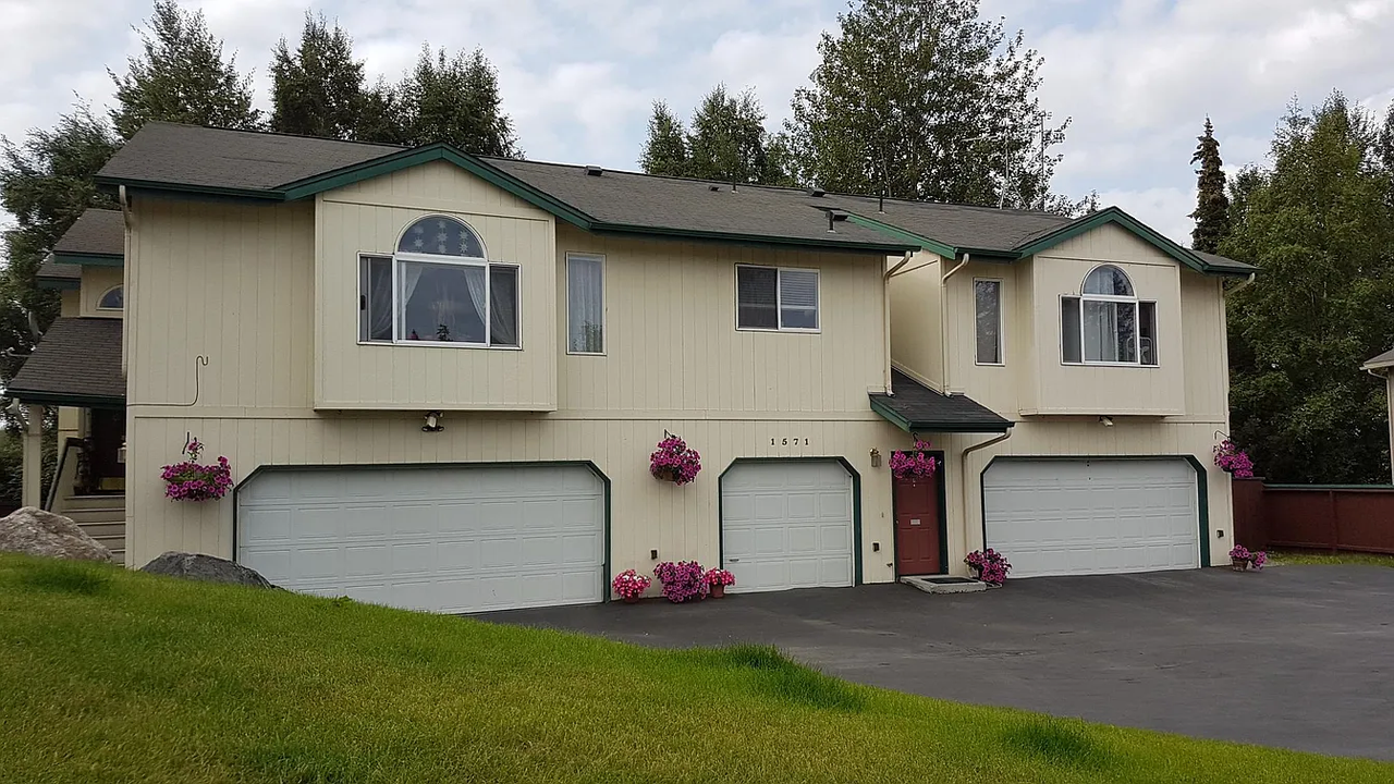 This split-level triplex end unit on 1571 Elcadore Drive is move in ready on February 1st 2026! -Wood flooring -Commercial grade carpet stairs -Stainless steel kitchen sink -New backyard deck -Large paved driveway -Large fenced backyard -Large 2 car garage -Open floor living space & vaulted ceiling -1100 Square feet of living space -Walk in closets in both bedrooms -Split-level living space -In housing washer & dryer -Convenient South Anchorage location Water, heat & yard service are included in lease. Tenant pays Gas, Garbage & Electric. $1,000 Deposit at move in. No Smoking or oil leaking cars. No cats No large dogs Please inquire for lap dogs Water, heat & yard service are included in lease. Tenant pays gas, garbage & electric. $1,000 Deposit at move in.
