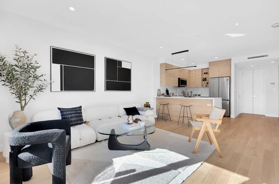 Bright one-bedroom residences feature white oak floors, expansive double-paned windows, and a calm, modern design with abundant natural light. Many units include private balconies, in-unit LG washer/dryer, and central heating and cooling. The sleek kitchen offers custom cabinetry, quartz countertops, a waterfall island, Samsung appliances, and a wine cooler. Spa-like bathrooms feature porcelain tile, Kohler fixtures, and radiant heated floors. Amenities include a roof deck, peaceful courtyard, Zen garden lounge, fitness center, plus parking and storage. Ideally located in Astoria, just minutes from the Broadway and 30th Avenue subway stations, surrounded by parks, dining, and shopping.