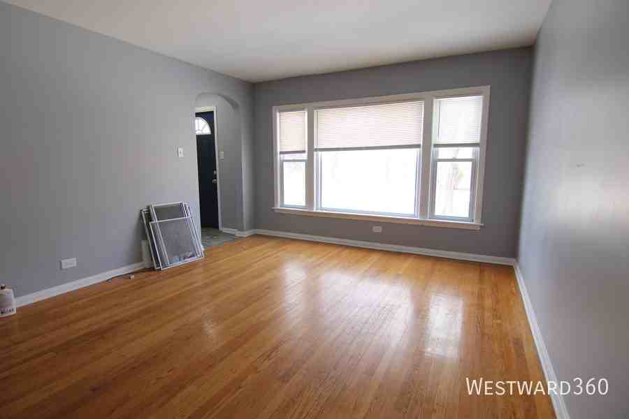 This refreshed 3-bedroom, 1-bath single-family home offers generous living space, classic character, and modern updates throughout. Inside, you’ll find hardwood floors, fresh neutral paint, and a bright, oversized living room anchored by a large picture window that fills the space with natural light. A separate formal dining room features charming built-in corner hutches and an arched doorway, adding warmth and vintage appeal. The fully renovated bathroom includes a modern floating vanity, dark wood-look tile flooring, and a tiled tub/shower combo. The kitchen offers a functional layout with oak cabinetry, ample counter space, a ceiling fan, and a gas range (refrigerator to be installed prior to move-in). All three bedrooms include hardwood floors and closet space. Downstairs, the expansive unfinished basement provides abundant storage or room for a workshop, complete with a utility sink. Outside, enjoy a massive fenced backyard—perfect for outdoor use, entertaining, or simply having space to breathe. Located in Riverdale, this home offers easy access to local shopping, schools, and major roadways, making it a practical option for commuters seeking space and privacy at a strong value.