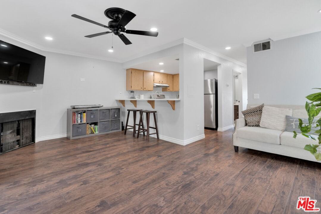 Welcome to this charming and well-maintained 2-bedroom, 2-bath condo offering 795 square feet of comfortable living in a convenient and desirable location. This bottom-unit home features an open kitchen with a bar-style countertop, perfect for casual dining and entertaining, and flows seamlessly into the living area highlighted by a cozy gas fireplace. Enjoy indoor-outdoor living with a private, enclosed patio ideal for relaxing or enjoying your morning coffee. The unit also offers the convenience of an in-unit washer and dryer and a functional layout that maximizes space and comfort. The community features a pool and basketball court, adding to the lifestyle appeal, while hillside views create a pleasant and peaceful backdrop. Ideally located close to freeways, shopping, and local markets, this home offers both comfort and accessibility.