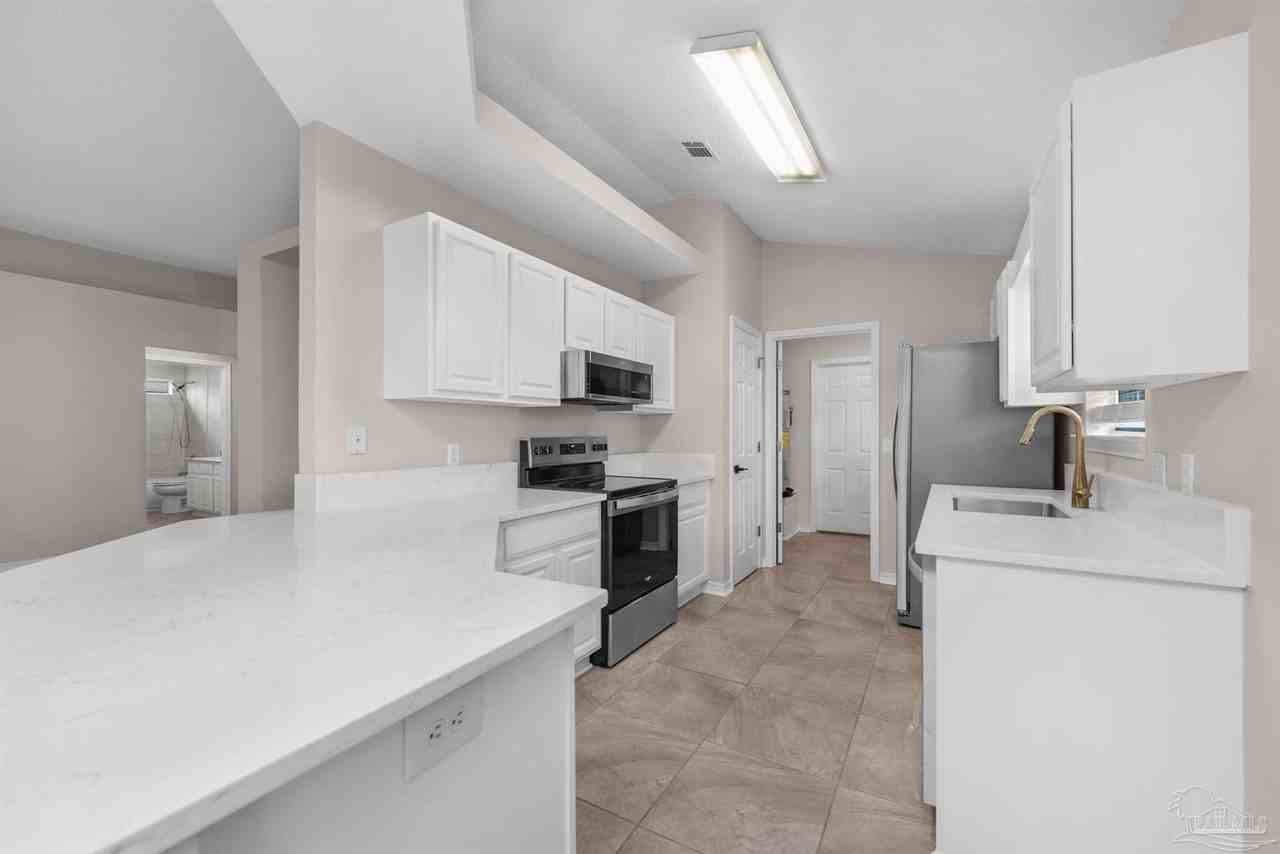 Welcome home to this bright and breezy 3 bedroom, 2 bathroom beauty offering 1,645 sq ft of comfortable living in a highly desirable Gulf Breeze neighborhood! This home shines with brand-new carpet, new kitchen appliances, and a newly renovated kitchen and bathrooms, giving it a fresh, modern feel throughout. Tons of natural light fill the space, while stainless steel appliances and a cozy Florida room make it perfect for relaxing or entertaining. A washer & dryer (non-warranted) are included for added convenience. Step outside to enjoy a fully fenced yard, and yes — small pets are welcome with approval Located in a friendly community with access to a children’s playground and walkable access to the public beach on the sound, you’ll love morning strolls, playtime close to home, and stunning sunset views Easy coastal living with space, style, and lifestyle perks — this one is a must-see!