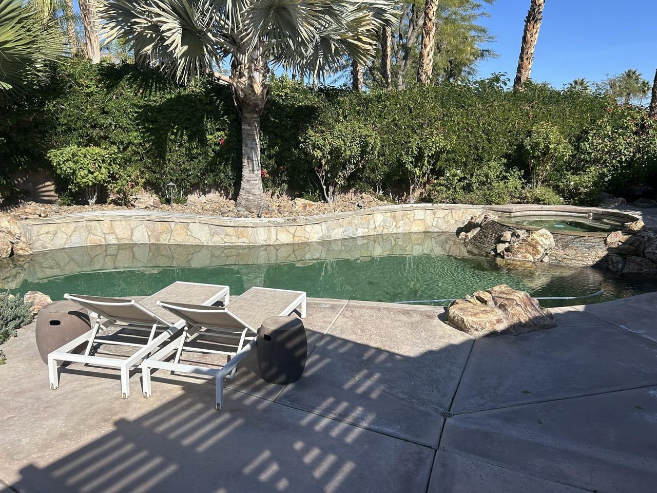 Property Status: Active Available all Months! Located within the prestigious Rancho La Quinta Country Club, this exceptional home offers access to a state-of-the-art fitness center, community pools and spas, and a beautiful cantina for dining located at the main pool area. Set on a lushly landscaped 13,000 sq. ft. lot away from the golf course, the home welcomes you through a gated courtyard and custom double-door entry. Inside, the spacious floor plan features 4 bedrooms, a formal living room, elegant built-ins, surround sound, custom lighting, and a striking shadowbox faux copper fireplace. One bedroom includes office built-ins, while the dedicated office features French doors opening to a private side patio. The luxurious primary suite boasts a generous bathroom with marble countertops. The kitchen and bathrooms have been remodeled, and the home features custom paint throughout, along with a three-car garage. The resort-style backyard is ideal for entertaining, offering lush landscaping, a built-in barbecue, refrigerator, outdoor fireplace and bar, an expansive pool, sparkling spa, and a misting system for year-round comfort. A detached casita completes the property, featuring a living room, mini kitchen, beautiful bathroom, laundry area, and spacious bedroom with a queen bed-perfect for guests or extended stays. Call us today to book your stay. Pricing varies by season-please call for current rates. FYI: Owner is adding another queen bed to home. Office has a Pull out couch $5K & very comfortable. Professional photos will be coming shortly. Copyright © 2026 California Desert Association of REALTORS®, Inc. All rights reserved. All information provided by the listing agent/broker is deemed reliable but is not guaranteed and should be independently verified.