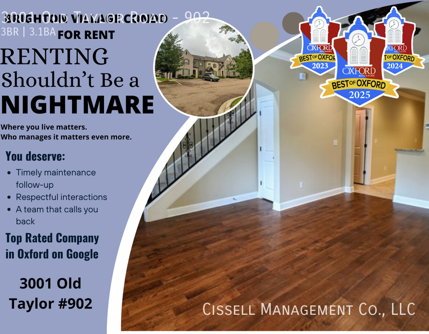 This property is currently occupied. To respect the privacy and security of our current residents, showings are available after your application is accepted and prior to lease signing. Please see the photos and virtual tour. To ensure you have the most up-to-date info, make sure you are viewing this on our company website. 3001 Old Taylor Rd #902 Move-in Date: August 14 Development: Brighton Village Bedrooms: 3 Bathrooms: 3.5 Unit Is Not Furnished Restrictions: None Utilities Included: Cable, Internet Other Included: Lawn Maintenance Features: Community PoolLawn Maintenance Included No Upfront Security Deposit Option Pets Welcome Smart Keyless Entry W/ Guest Access