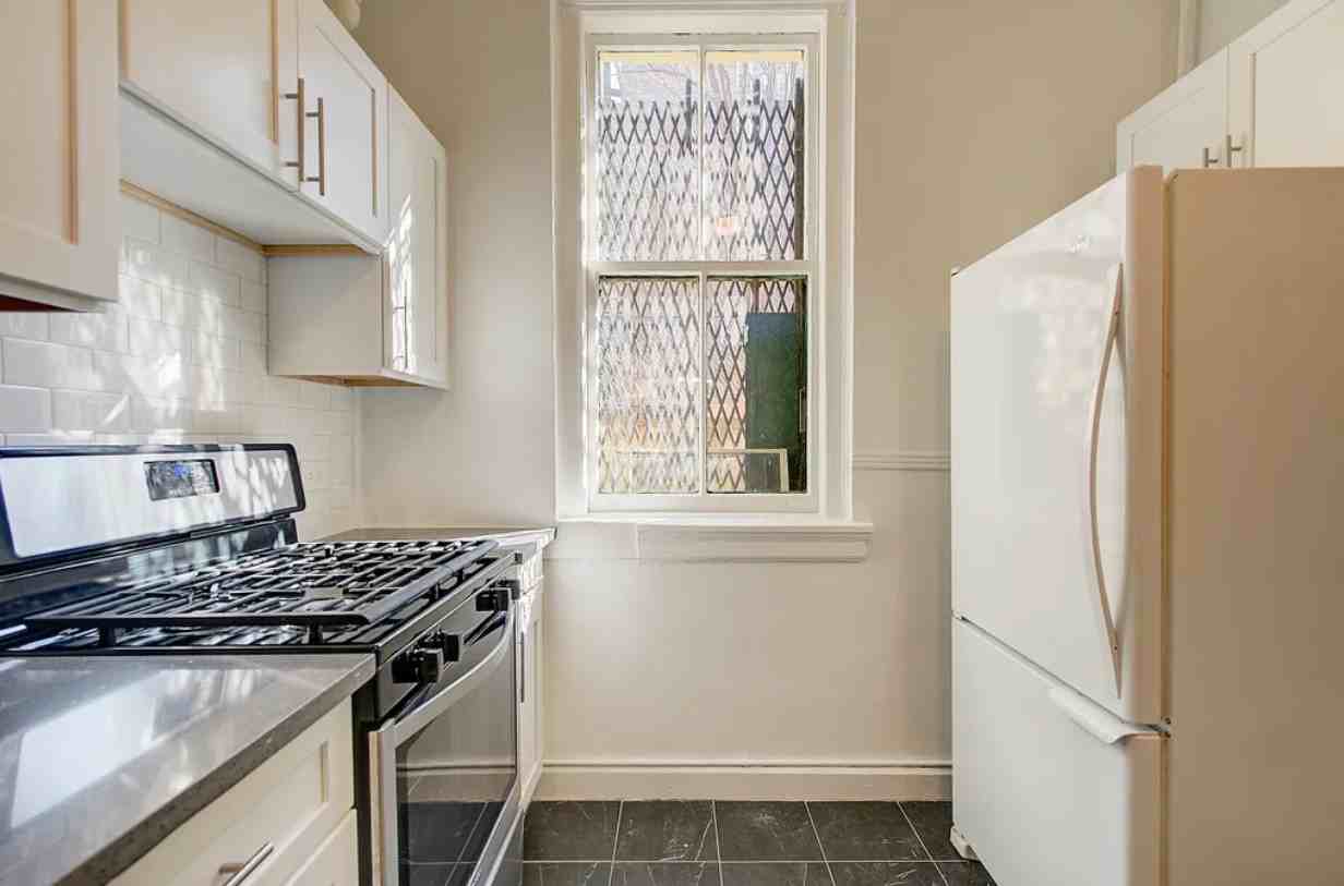 Step into a bright, spacious home where classic charm meets modern comfort. The sun-filled living room flows seamlessly into an eat-in kitchen, featuring brand-new white shaker cabinets, sleek black granite countertops, full-size appliances, and a large window overlooking peaceful garden views. Down the hall, youll find two generously sized bedrooms and a newly renovated, contemporary bathroom. Prewar details shine throughouthigh ceilings, exposed brick, elegant moldings, plaster walls, and oak hardwood floorsadding warmth and character to every room. The impeccably maintained building offers a beautifully landscaped garden and patio, free on-site laundry, and a calm, community feel. Board approval required. No pets. Perfectly located near the 74th StreetRoosevelt Avenue transit hub, shopping on 82nd Street, local restaurants, schools, Travers Park, and the Greenmarketeverything you need is right outside your door.
