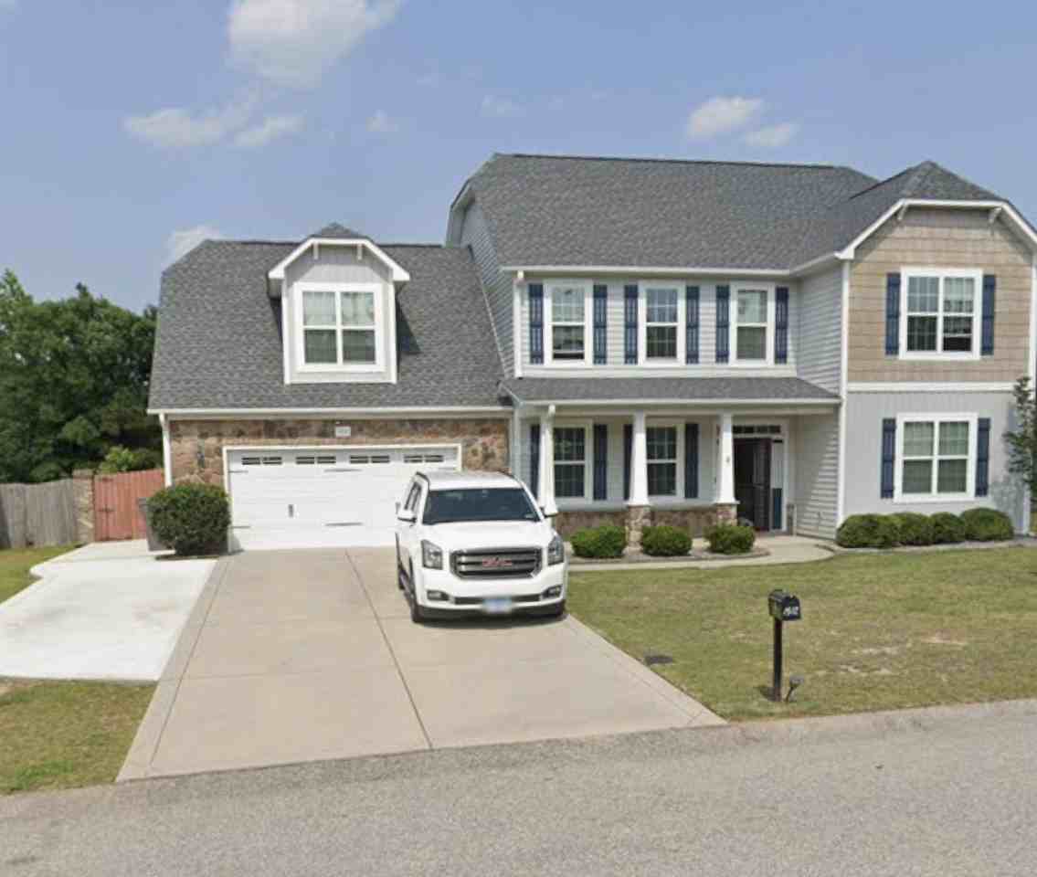 Welcome to your new home!! You will fall in love with this home located on a half acre lot that stretches down to a small pond. The interior features an elegant formal dining room with beautiful coffered ceilings, open concept kitchen with tile backsplash, that opens up to the living room, and a spacious breakfast bar with lots of cabinet and counter space. The owner's suite located on the first level is adorned with trey ceilings, all additional bedrooms are located upstairs. Upstairs you are immediately greeted by a spacious loft/family room. First bedroom is tucked away as you come up an around the stairs, the other 2 bedrooms are adjacent to each other at the top of the hallway. At the end of the hallway you will find a large bonus room, equipped with its own full bath and closet. The backyard highlights a relaxing covered porch and large backyard perfect for those that like to entertain. Additionally, this house is conveniently located 5 mins from 295 outer loop and 20 minutes to Fort Bragg.