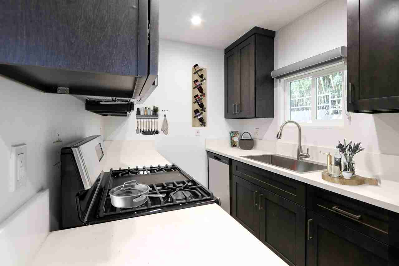 Carefully restored and designed by a renowned LA designer, these late 1950s modern luxury rental homes feature keyless entry door locks to spacious one and two-bedroom floor plans with newly renovated kitchen and bathrooms. The kitchen boasts sparkling white stone quartz countertops with brand new self-closing cabinetry and high-end stainless-steel refrigerators with matching gas cooktop with oven and microwave. iRing doorbells with a smart home video security camera are also included. There’s a community washer and dryer on site. Bathrooms feature porcelain tiled bath tubs and glass shower doors. Each rental home also includes central A/C cooling and heating with recessed lights with luxury style cellular shade window blinds and distressed wood plank floors. | INTERIOR | - Cellular Shade Window Blinds - Spacious Designer Floor Plan - Vinyl Plank Flooring | KITCHEN | - Modern Designer Cabinetry - Quartz Countertops - Stainless-Steel Appliances - Refrigerator - Range w/ Oven - Microwave - Open Kitchen Space Layout | BATH | - Tiled Shower and Bath - Glass Shower Doors - Oversized Vanity Mirror | AMENITIES | - WASHER & DRYER (Community) - Assigned Parking