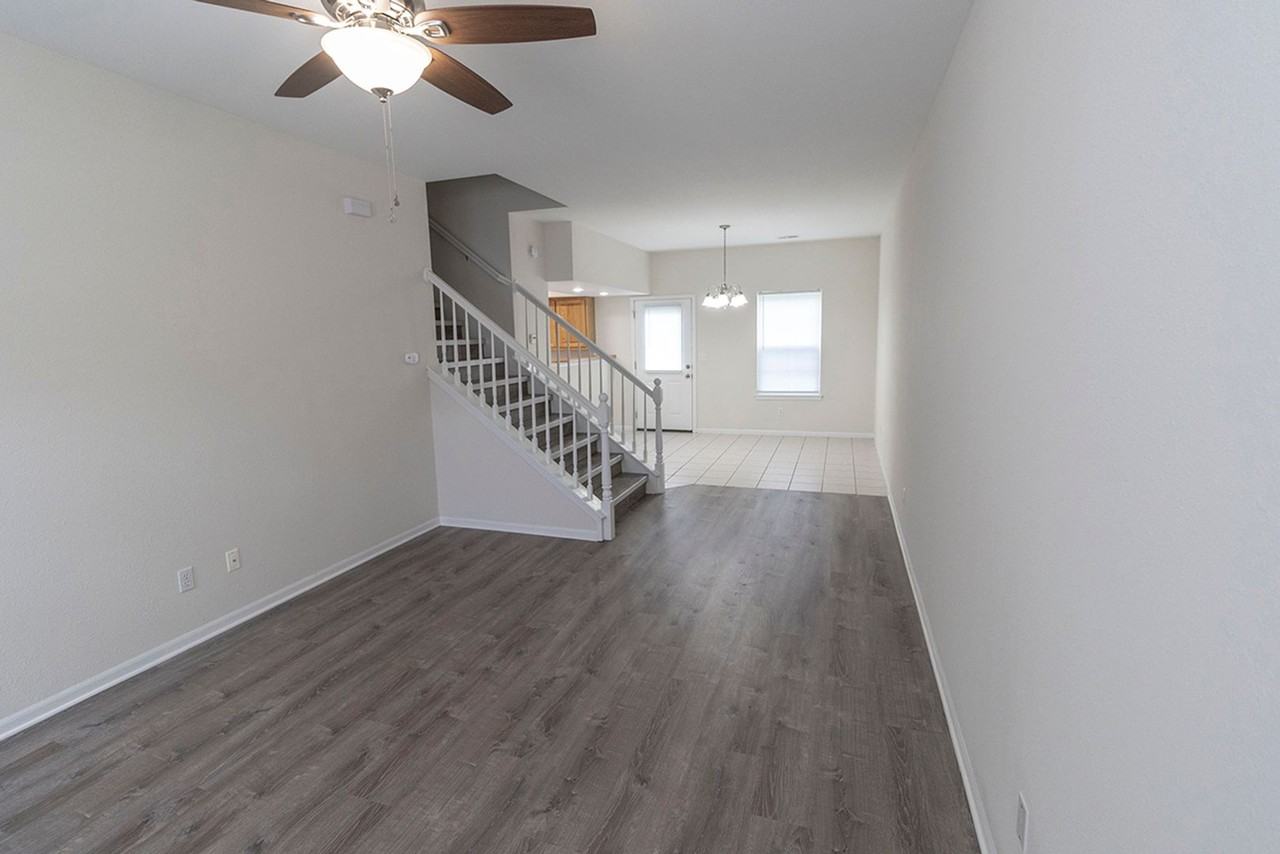 Wonderful three-bedroom, two-and-a-half-bath townhome in northern Columbia, conveniently located near Highway 63 and Interstate 70. The main level offers a large living room, a spacious kitchen with an adjoining dining area, a laundry closet, and a half bathroom. Upstairs, you’ll find two bedrooms with a full bathroom, along with a primary bedroom featuring a private ensuite. Additional highlights include luxury vinyl plank flooring throughout, an attached one-car garage, and a backyard patio. Lawn care and maintenance are included for added convenience. Call today for more information and to schedule a showing! Directions: Traveling North on Rangeline St, turn right onto E Brown School Rd, left onto Derby Ridge Dr, right into the parking lot.