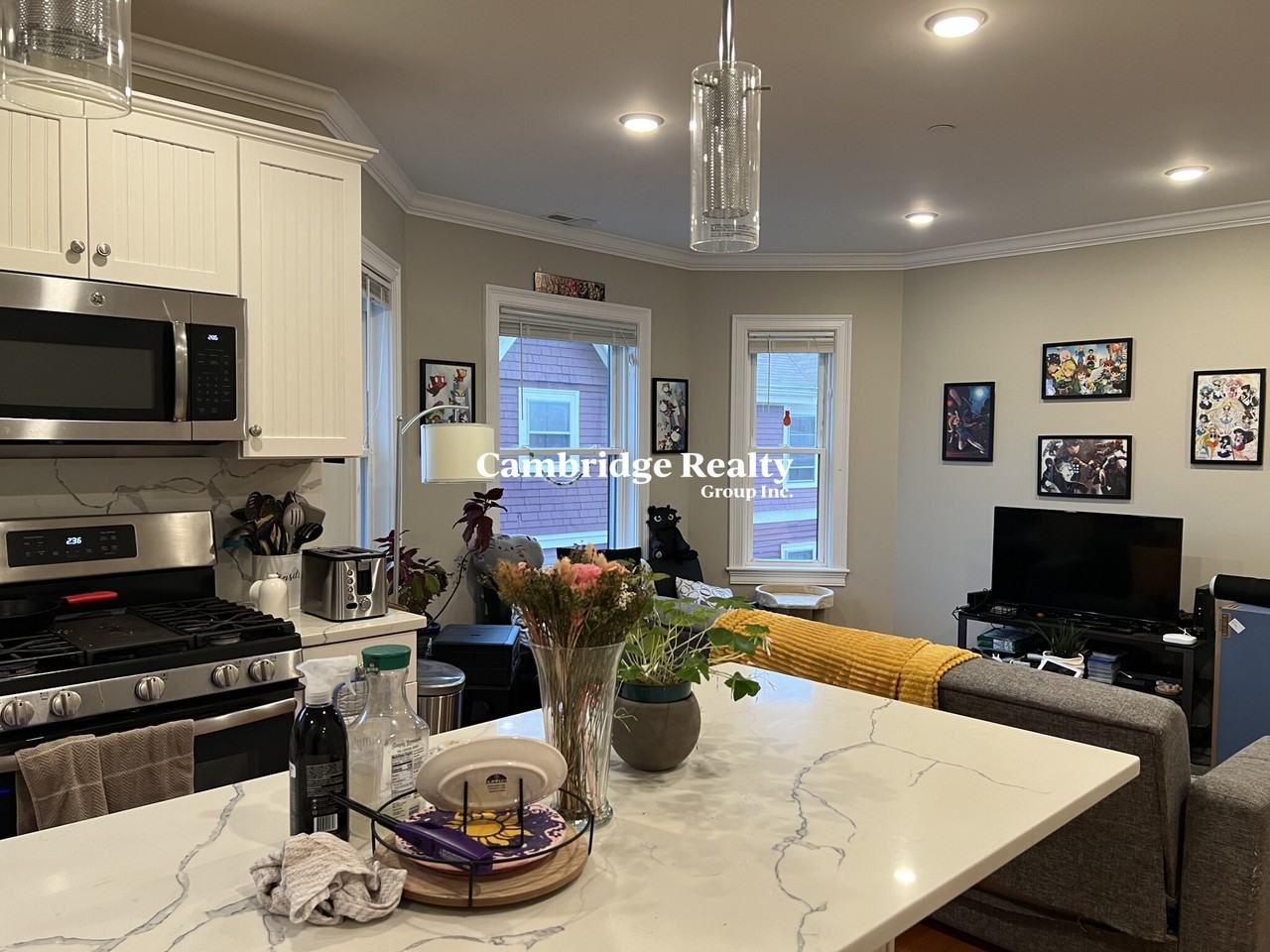 Davis Square Closest train = Davis Square (Red Line) 4 bed/2 bath (third floor, right-side) EVERYTHING renovated in 2018 Gorgeous white-granite counters New cabinets All new stainless-steel appliances (including a wine fridge) In-unit laundry Modern/tiled bathrooms Hardwood floors throughout Central heat/ac (NEST thermostats) Private front deck Off-street parking available for rent Fee Disclosure: Last Month Rent: $6,200