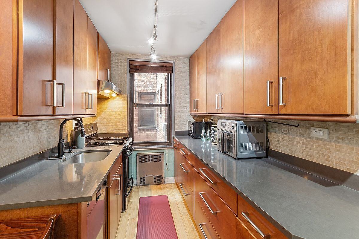 Oversized, rarely available layout in the Texas! Corner unit large one bedroom with separate windowed eat-in kitchen. Apartment features double exposures in the living room, and its layout is perfect for living and entertaining alike. The windowed kitchen has quartz countertops, solid wood contemporary cabinetry, track lighting and all stainless appliances, including a dishwasher, microwave and a brand-new double-door, double-drawer Samsung refrigerator. Recently renovated with new bamboo flooring in the kitchen, entry foyer and dining area, the entire apartment is bright, and light filled with generously sized closets and storage throughout. Newly remodeled windowed bath, freshly painted with gleaming subway tile, pedestal sink, full soaking tub, and chrome fixtures including rain forest shower with handheld. The Texas is a well-maintained co-op on a quiet tree lined street with a bike room, storage room, parking garage*, upgraded commercial grade laundry room, newly installed fitness center, and a spacious furnished patio/deck. *(fee, wait list) -Electricity, Heat, and hot water included -Pet Friendly! -Dishwasher -A/C units Included -Professionally Managed by Garthchester Management -Two minutes to LIRR Station