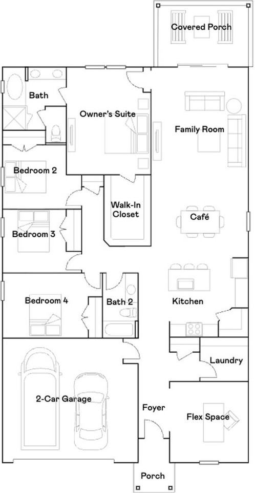 This stunning 4-bedroom, 2-bathroom single-level residence is perfectly crafted for the modern family, blending style and comfort in every square inch. From the moment you step inside, you'll be greeted by a bright and airy open-concept layout that effortlessly connects the heart of the home—the kitchen—with your spacious living and dining areas. Whether it's pancake breakfasts or movie nights, this central hub is made for making memories! Looking for a quiet spot to get things done? You’ll love the versatile flex space right off the entry. It’s the perfect canvas for your new home office, a cozy art studio, or even a fun playroom for the kids. When it’s time to unwind, head over to the private wing of the home where four comfortable bedrooms await. The expansive owner’s suite is a true sanctuary, featuring a spa-like en-suite bathroom and a massive walk-in closet for all your storage needs. Step outside to your covered back porch, where indoor-outdoor living becomes a reality. It’s the ideal spot for sipping your morning coffee or hosting weekend BBQs while enjoying the fresh air. Don’t miss your chance to be the very first to call this beautiful house "home" in the highly sought-after Retreat community! *** Photos of home are of similar home not of actual home***