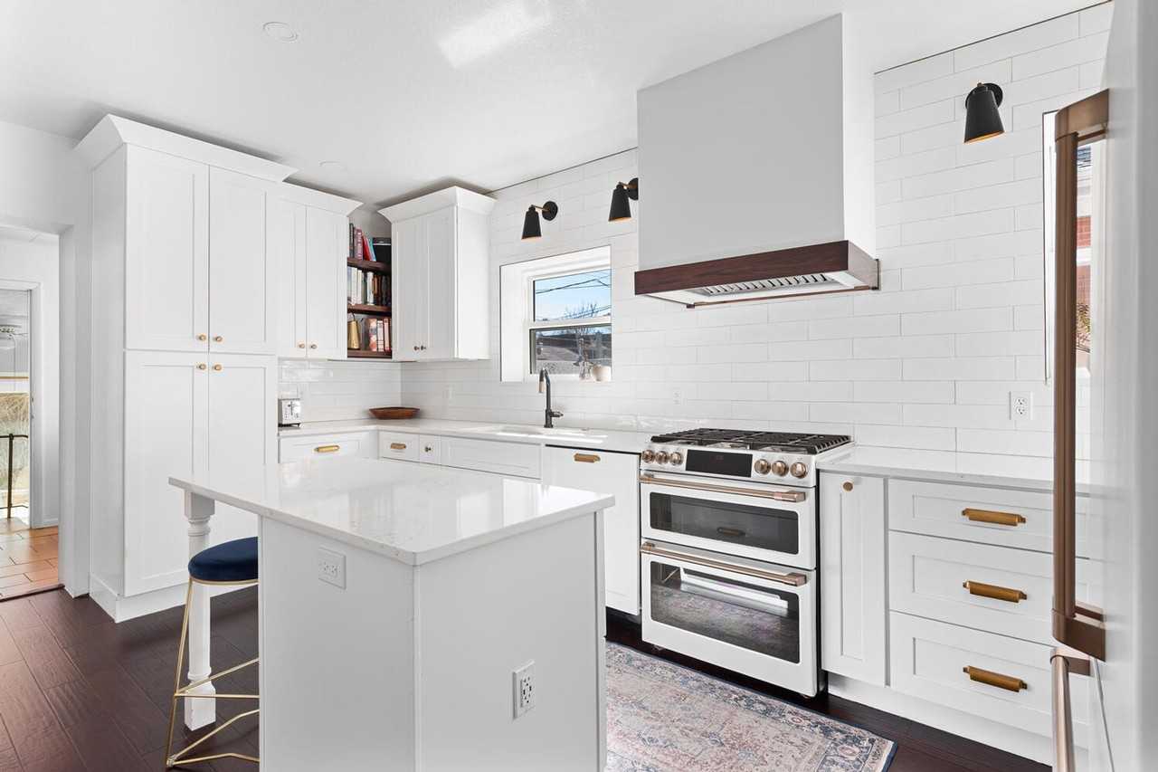 Beautifully remodeled, furnished, sunny two-story Wash Park bungalow with chef's kitchen containing high-end appliances, new hardwood floors, office space, laundry room with storage, drink fridge and washer/dryer, sunroom with rowing machine, and patio sitting area with raised garden beds. Large front room offers cozy fireplace, sitting area, and dining table. The bedroom layout is ideal for roommates. Upstairs, a primary suite with queen size bed, walk-in closet, remodeled bathroom and flex space. Downstairs, a second bedroom with blackout curtains, queen size bed, walk-in closet and bathroom with tub. Cozy TV/entertainment area in the basement, with a second TV in the upstairs bedroom. Office includes built-in desk for work from home. Gorgeous sunroom features a rowing machine, bench with weights, and huge sliding doors for indoor/outdoor entertaining and space for sunrise yoga sessions. Sunny patio with outdoor furniture and low-maintenance butterfly garden.