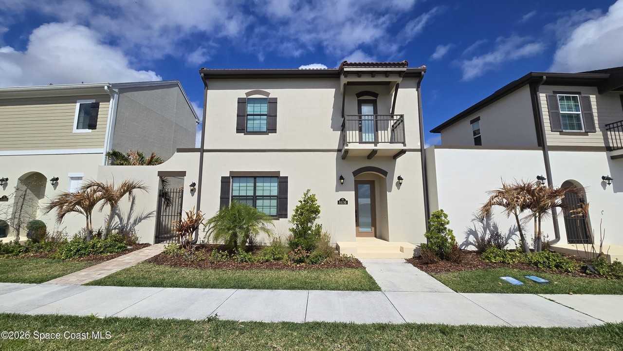 Property Status: Active Welcome to this exquisite courtyard home in Reeling Park offering 4 bedrooms, 3.5 baths and 2.5 car garage with picturesque water views from the front of the home. Boasting a spacious open floor plan, this home offers a perfect blend of modern living and comfort. The main level features a large, inviting great room with tons of natural light pouring in from the windows and large sliding glass doors. The Kitchen is equipped with high-end stainless steel appliances, a central island for entertaining and a cozy dining area overlooking your private courtyard. The first floor also offers a bedroom, full bath, half bath and key drop with base & upper cabinets. Upstairs, you'll find the primary bedroom and two generously sized bedrooms with a jack n jill bath. The primary suite offers a tranquil retreat with a spacious & private balcony overlooking your courtyard, a luxurious en-suite bath complete with dual sinks, an oversized shower and his & hers walk-in closets. The other two bedrooms provide plenty of space for family or guests and offers a balcony overlooking the pond across the street. A private oversized courtyard adds to the charm, offering a peaceful outdoor space for relaxation or entertaining. The 2.5 car garage provides ample storage and parking space, completing the appeal of this exceptional home. With its prime location within Reeling Park you are within walking distance to Prato Vista Park and Addison Village Club. Less than 20 minutes to the beach and 45 minutes to Orlando International Airport. This is a home you don't want to miss. Copyright © 2026 Space Coast Association of Realtors. All rights reserved. All information provided by the listing agent/broker is deemed reliable but is not guaranteed and should be independently verified.