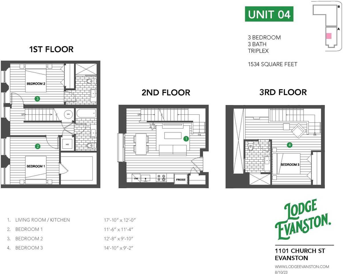 #04 is a 2-bedroom + Loft/Den, 3-bath, triplex 3-LEVEL unit in the former Sanctuary building. The main level features an open-concept living room and kitchen space with tall ceilings and exposed brick; primary bedroom suite is located in the lower level; upper level LOFT SPACE is perfect for a bedroom, den, or office. Lodge Evanston is a brand-new, style-forward, boutique, new-construction apartment building in the heart of downtown Evanston. The building artfully combines a former sanctuary transformed into eight duplex & triplex homes in a walk-up property, seamlessly integrated with a modern new construction elevator building featuring twenty-two modern layouts. Modern Luxury Property & Unit Features: * designer kitchen w/ Samsung stainless steel appliances * spa-inspired bathrooms w/ floor-to-ceiling tile * tall ceilings & big windows flooded w/ natural light * queen size bedrooms w/ custom-organized closets * in-unit laundry (washer & dryer provided) * individually controlled central heat and A/C * insulated windows with roller shades in all rooms * keyless entry systems, smart thermostat * video-enabled secure entry systems * elevator building, parking, and bike room * communal rooftop deck w/ furniture & grill The Lodge is a pet-friendly community. Please ask about available on-site and off-site parking options. Each tenant pays a fixed monthly service fee for a bundled utility service package inclusive of water, sewer, trash, recycling, and lightning-fast 1000 Mbps internet. All of this in an incredible heart of downtown Evanston location, walking distance to everything. Available Date: 7/1/26 ************************************** Bundled Utility Service Package Fee: Each unit pays an additional fixed monthly service fee for a bundled utility service package fee which includes: water, sewer, trash, recycling, and lightning-fast 1000 Mbps internet ☑️ one bedrooms: + $125/mth ☑️ two bedrooms: + $150/mth ************************************** ☑️ LEASING CONTACT INFO Leasing Director: Ari Elliott **** (773) 669-5870 (text only) ☑️ SCHEDULE A TOUR HERE: https bit ly lodge-evanston-hotsheet **************************************
