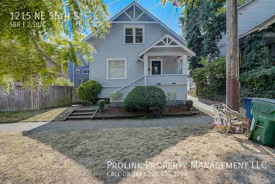 1215 NE 55th St, Seattle, WA 98105 Preleasing for Fall 2026! Located in the heart of UW! Well-maintained 5BR/1.75BA/1,970sqft house for Fall prelease! Newer vinyl floors in all BRs on 2nd Fl (2024), plus newer tiled floors in basement BR (2022)! Living Room, Dining Room, Kitchen, plus 1BR, .75BA, and Utility Room with Washer/Dryer on Main Floor, 3BR plus 1BA on 2nd Floor! Daylight Basement includes 1BR and Family Room. Unit includes access to private cement patio and fully-fenced Back Yard shared with neighboring unit under same management. Street parking available. Close to UW campus, U Village, shopping, restaurants, coffee shops, and bus stops – a Walkscore-rated “Walker's Paradise” (96 out of 100)! * Rent is $4,550.00 per month * Tenants responsible for all utilities (water/sewer/garbage/electric/gas) and Internet *1,970sqft house: 5BR/1.75BA/Kitchen/Living Room/Dining Room/Family Room/Utility Room/Back Yard & Patio/Street Parking * Main Fl: 1BR/.75BA/Kitchen/Living Room/Dining Room/Utility Room * 2nd Fl: 3BR/1BA * Daylight Basement: Family Room/1BR * See more pictures: https photos app goo gl nFxCdUkP2V971EWa6 * The information above has been given to us by the Owner or sources that we deem reliable. We have no reason to doubt its accuracy, but we do not guarantee it. Prospective tenants should carefully verify all information contained above * Available 9/12 * No Smokers, No Pets * Terms: Minimum 12 months; NO summer-only, short-term, or month-to-month leases. 1st Month's Rent and Last Month's Rent due at lease-signing; refundable Security Deposit equaling half of one month's rent due at start of lease * Satisfactory credit check, background check (where applicable), and rental references required for all applicants and expected co-occupants aged 18 and over; non-refundable application fee (charged by screening agency) is $45.00 + tax per applicant * No deposits accepted until application is processed and approved * Leased by Prolink Property Management, LLC, 14670 NE 8th St, Ste 168, Bellevue, WA * Equal Opportunity Housing: We are pledged to the letter and spirit of U.S. policy for the achievement of equal housing opportunity throughout the Nation. We encourage and support an affirmative advertising and marketing program in which there are no barriers to obtaining housing because of race, color, religion, sex, handicap, familial status, or national origin.