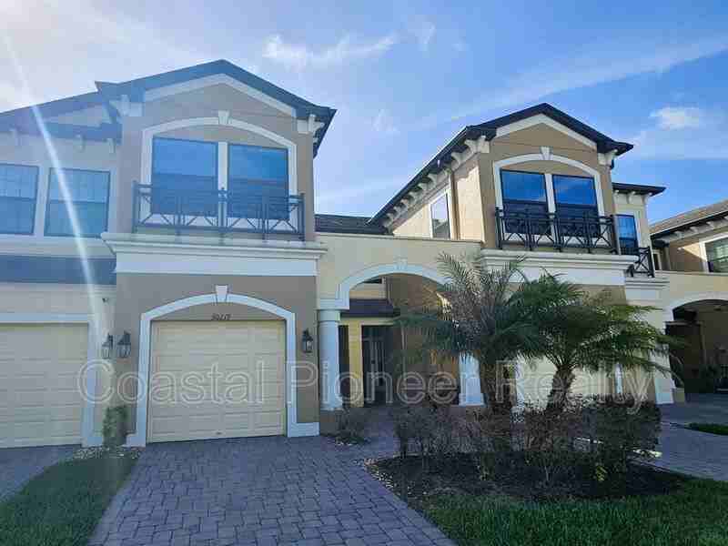 Move-in Ready and shows like a Model with many Upgrades! 3 Bedroom, 2 ½ Bathroom Townhome with 1 Car Garage in the Windermere Community of Wesley Chapel. With 1,853 Sqr-Ft, this M/I Homes Townhome feels spacious and grand. From the welcoming Foyer, you will immediately notice the attention to details and numerous fine touches. The Living Room is the perfect space for entertaining and relaxing. The Open Floorplan flows from the Living Room, to the Dining Room, and to the Kitchen. The Kitchen is a Chef’s dream with Quartz Counters, Tall Wood Cabinetry with Crown Molding, Stainless Steel Appliances, a large Walk-in Pantry, and a Sunny Window. There is even Counter Space for barstools. The 1st Floor has Ceramic Plank Tile throughout and a stylish Powder Bathroom. Follow the Turned Staircase with its attractive Wood Treads and Spindles to the Carpeted 2nd Floor. The En-Suite Master Bedroom has a substantial Walk-in Closet with Custom Built-in Shelving, a Ceiling Fan, and 2 Windows overlooking the Tranquil Conservation Area. The Master Bathroom has Quartz Counters with Dual Vanities, a Glass Enclosed Shower with Accent Tilework, and a Private Toilet Closet. The 2 Secondary Bedrooms also have generous Closets with Built-in Shelving and share a Full Bathroom. This Bathroom is in perfect condition and has a Vanity with a Quartz Conter along with a Tiled Tub-Shower. Enjoy the outdoors year-round from the Covered and Screened Lanai. This Gated Community feels serene and well-kept. Amenities include a Pool, Parks, and Walking Trails. Water, Sewer, Trash, and Exterior Lawn/Landscaping included in the Rental Rate. Great location with easy access to all the fantastic Schools, Shopping, Dining, and Entertainment along SR 56 in Wesley Chapel. Pets permitted on a case-by-case basis with Owner's approval and a $350 per Pet Non-Refundable Pet Fee. The property is Professionally Managed and Maintained. There is a one-time $150 Administration/HOA Fee, a $75 Application Fee for each applicant 18 years or older. Applicants should have a minimum 650 credit score, Gross Monthly Income of at least 2.5 times the Monthly Rent, and stable Rental History (no Evictions or Tenant Collections). Amenities: Community Pool, Park, Walking Trails