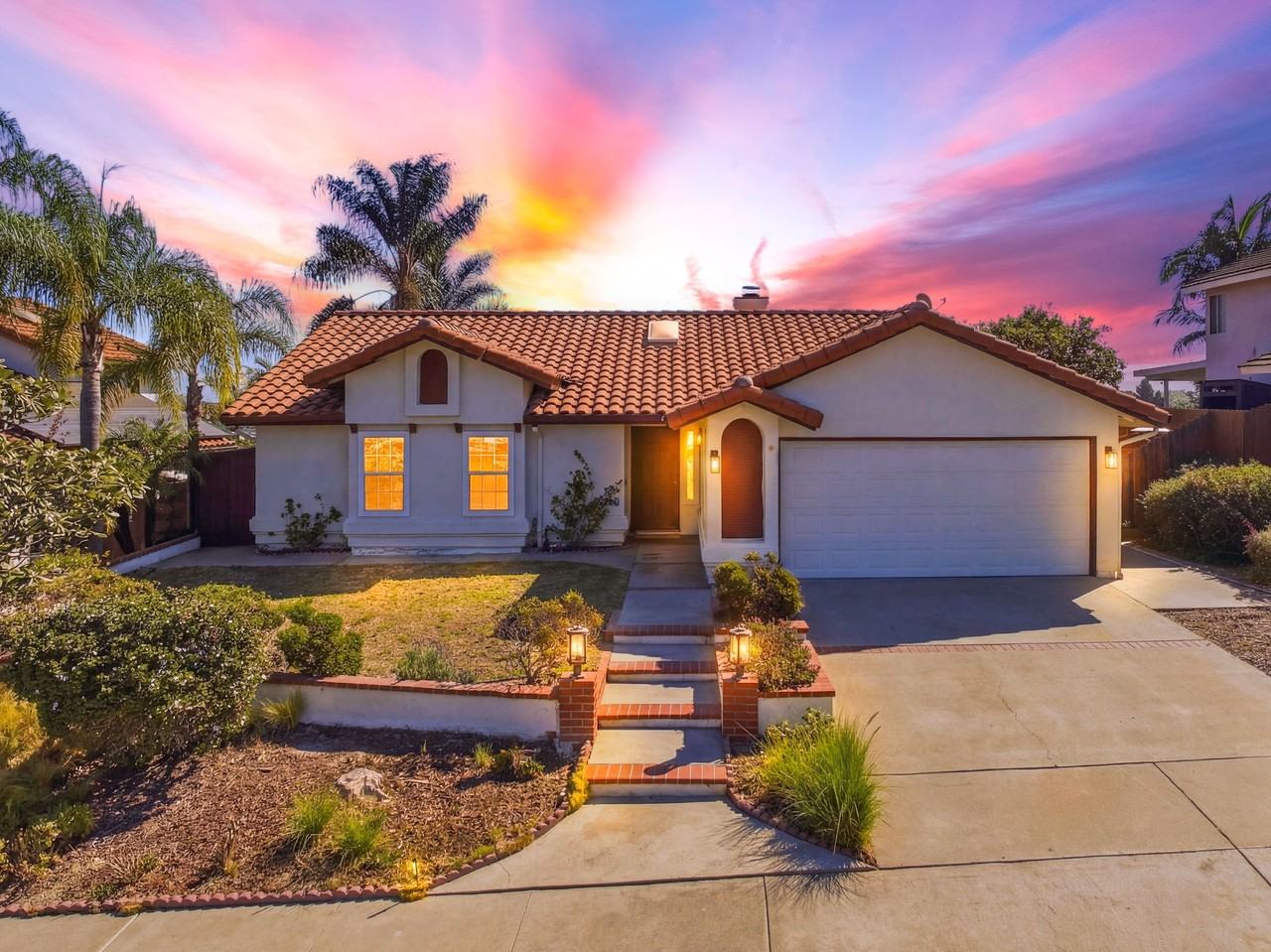 This inviting single-family home sits on a spacious 7,201 sq ft fenced lot with a gentle slope, wood fencing, and a sprinkler system on a timer for easy maintenance. It offers convenient parking with a 2-car attached garage and additional driveway space. Enjoy beautiful views of city lights, mountains, and the surrounding valley from this well-designed property featuring a classic clay roof and durable stucco exterior. Inside, the 1,205 sq ft single-story layout boasts an open floor plan with a comfortable living room, dining area, and a functional kitchen equipped with a dishwasher. The home features a mix of carpet and stone flooring, adding both warmth and style throughout. There are 3 bedrooms and 2 full bathrooms, providing ample space for guests or family. Laundry is conveniently located in the garage and includes both a washer and dryer. Step outside to a concrete porch or patio—perfect for relaxing or entertaining. The home is equipped with a forced air heating and cooling system powered by natural gas, ensuring year-round comfort.