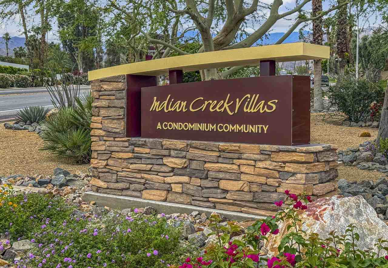 This cozy upper-level unit offers a modern living space with a private balcony for enjoying mountain views Nature lovers will adore the NEARBY HIKING TRAILS MINUTES AWAY from El Paseo, Downtown Palm Desert, And the Palm Desert Mall, you'll have everything you need just a stone's throw away. This cozy upper-level unit is a 2 Bed 1 Bath home located in the Indian Creek Villas Community. Appliances included refrigerator, dishwasher, stove & microwave and washer & dryer all in one unit and (1) shared garage parking space. There is a laundry room shared with adjoining units. There is a large storage closet in the secure garage for additional storage Community features two well-maintained swimming pools. Hiking trailheads within walking distance. Property is located off Highway 74, Highway 111, and El Paseo Drive. You are less than 2 miles from Palm Desert Mall, College of the Desert, and Civic Center Park. Pets on approval from owner This is a 1yr minimum lease, this is not a seasonal or Short-Term Rental. Tenant pays for all utilities except for water & trash.