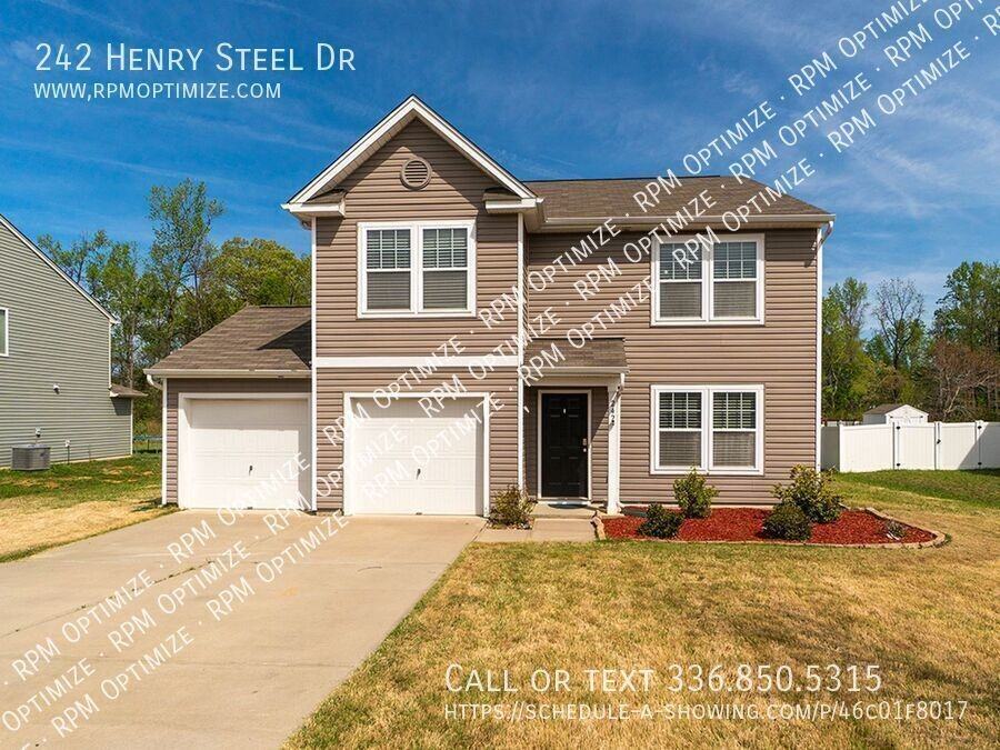 Discover this charming two-story home just minutes from downtown Gibsonville, a quaint town with convenient access to Greensboro. This inviting property offers three bedrooms, two full bathrooms, and a convenient half bath downstairs, along with a flexible and functional layout designed to fit a variety of lifestyles. Upstairs, you’ll find a spacious primary bedroom featuring a walk-in closet and an en-suite bathroom with a relaxing garden tub, separate shower, and double vanity, along with two additional bedrooms and a versatile loft space that can be used as additional living area. The main level features a kitchen with an island, dining area, and pantry, plus an additional flex space just off the kitchen that can serve as a sitting room, office, or game room. The home offers a comfortable mix of carpeted living areas and bedrooms with laminate vinyl plank flooring in the kitchen and flex spaces. Additional features include central air, an electric furnace, ceiling fans, a laundry room with washer and dryer included, keyless entry, and an attached two-car garage. Step outside to enjoy the large backyard, offering plenty of space for outdoor living. This home is offered unfurnished on a one-year lease with a no-smoking policy, pets negotiable, and showings available in person only. Deposit-free move-in options are available through Obligo for qualified applicants, and all residents are enrolled in the $35/month Resident Benefits Package. AVOID RENTAL SCAMS: Real Property Management Optimize exclusively markets this listing and will never request wire transfers or app payments. Double Vanity Flex Space Garden Tub Glass Shower Keyless Entry Kitchen Dining Area Kitchen With Island Lvp Flooring Shower / Tub Combo Solid Surface Counters Two Car Garage Two Story
