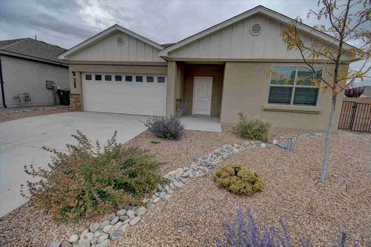 Bright and open single-story home in the new community of Geopark! This 3-bedroom, 2-bath home features a vaulted ceiling in the living room, 9’ ceilings throughout, and an inviting layout designed for comfort and style. The spacious kitchen offers an island, walk-in pantry, and solid granite countertops with a 4” backsplash, while stainless steel LG appliances—including gas range, dishwasher, microwave, and side-by-side refrigerator—complete the package. All bedrooms are generously sized, with wood shelving and rods in every closet. Additional highlights include a separate laundry room, tile flooring in the entry, kitchen, dining, laundry, and baths, and 2” faux wood blinds throughout. The living room opens through glass sliders to a large back patio, perfect for outdoor living. Built with efficiency in mind, this home is rated Silver level in green efficiency and includes dual-pane windows, an energy-efficient gas furnace, and much more. A 2-car garage adds convenience.