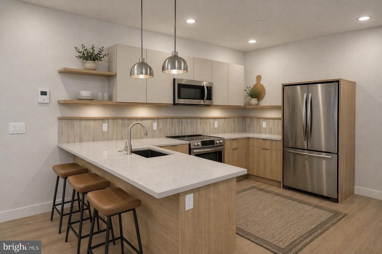 Property Status: Active This thoughtfully designed two-bedroom, two-bath residence blends refined finishes with effortless, modern living. Bathed in natural light from its west and south exposures, the home is filled with warm, golden tones throughout the day, creating an inviting and elevated atmosphere. The open-concept living space flows seamlessly to a private patio-an ideal extension for indoor-outdoor living, morning coffee, or evening unwind. The kitchen is designed with both form and function in mind, featuring light oak cabinetry with integrated bronze edge pulls, light gray quartz countertops with subtle veining, and a clean vertical tile backsplash that adds texture without overwhelming the space. The added shelving offers space for display items, cook books, spices, or various appliances so your workspace stays clear. Stainless steel appliances complete the look with a quiet sense of luxury. Peninsula bar seating for four adds effortless dining space. On the opposite end of the home, the primary suite offers a calm, private retreat with its own en-suite bath with beautifully tiled shower and vanity lit mirror, and room for a king sized bed and furniture, while the second bedroom is well-proportioned for guests, a home office, or both easily. A second full bath with tub shower, stacked in-unit laundry, and a modern intercom system add everyday convenience. Beyond the residence, the building delivers a full lifestyle experience. Residents enjoy access to a roof deck with sweeping views, a secured lobby entrance with mail room, a fully equipped fitness center, dedicated yoga room, infrared sauna room, and secure bike storage-all thoughtfully curated to support both wellness and ease. Tours are now available, first availability in May/June. Residence photos are digitally staged. Tours are available now. Early applicant specials include one month free, terms apply. Office Phone: (215) 381-7171 Copyright © 2026 Bright MLS. All rights reserved. All information provided by the listing agent/broker is deemed reliable but is not guaranteed and should be independently verified.