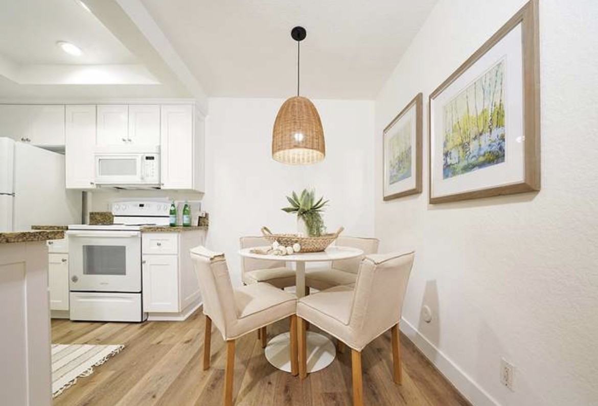 Beautifully remodeled property ideally situated directly in front of lush greenery and a serene, gently flowing stream. This highly desirable location offers convenient access to community amenities, including tennis courts, a swimming pool, and a relaxing jacuzzi. The home has been thoughtfully upgraded throughout and presents like a model residence. Features include luxury plank flooring, upgraded baseboards, and all-new recessed LED lighting. The dining area is highlighted by a stylish modern farmhouse light fixture, adding warmth and character to the space. Freshly painted in a clean, contemporary white palette, the interior feels bright, chic, and move-in ready. Additional upgrades include new window treatments, updated faucets in both the kitchen and bathroom, and a rustic-style bathroom vanity. The spacious walk-in closet provides excellent storage. The property also includes a newer air conditioning system, along with a washer, dryer, and refrigerator for added convenience. This home offers a perfect blend of modern upgrades, comfort, and a tranquil setting.