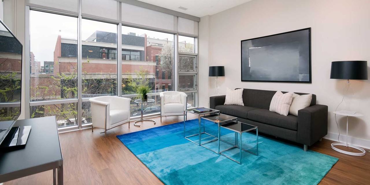 Welcome to urban modern living-just like the West Loop itself! Located at the west end of the West Loop, this trendy boutique mid-rise manages a neighborhood feel while sitting on the edge of downtown. Take an easy walk to Mariano s Fresh Market and Whole Foods, lots of independent retailers and several parks in the neighborhood. Only two blocks away you ll find Randolph Street, where you can dine at some of the city s finest and most famous restaurants, like Girl and the Goat, Au Cheval and Nellcote. The dining and bar options in this area are just spectacular. Transportation into and out of the city is super easy, with close CTA Blue, Pink and Green Lines as well as I-90/94 and 294 access. On-site social spaces include a resident lounge, state-of-the-art movie screening room, computer lab and 24-hour gym. The property is 100% smoke-free and uses a fob security system. Large open living spaces highlight these modern, tasteful residences, showcased by 10 ceilings, oversized windows
