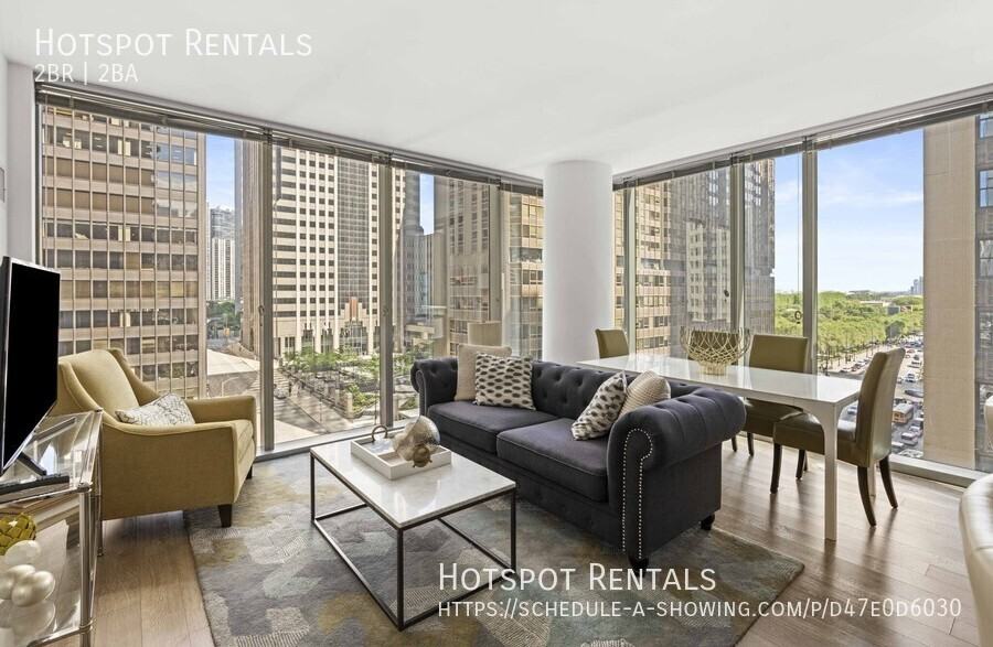 Take advantage of living in the heart of Michigan Ave and the Magnificent Mile while being just steps away from Millennium Park, endless shopping and easy access to every CTA Train in the city. This luxury downtown high-rise represents Loop-living at its best, with its urban garden with grilling stations, bocce ball courts, outdoor televisions, theatre space and fire pits. Relax in the outdoor rooftop pool and take full advantage of the private resident yoga studio, world-class fitness center or social lounge with game room and tech bar. This 100% smoke-free property offers contemporary creature comforts both on and off-site while you take advantage of everything Chicago has to offer. Of course, there is 24-hour security door staffing and maintenance services. Gourmet kitchens, spacious closets, and floor-to-ceiling windows are just the beginning of the apartment features you can expect. Each kitchen comes with a gas range, stainless steel appliance package, high-gloss cabinetry and quartz countertops. Hardwood flooring, in-unit washers and dryers and individually controlled heating and air conditioning round out the unit features. The keyless entry feature is a welcome modern convenience as well. Parking is available on-site at an additional charge. Cats and dogs are accepted throughout and there is a pet salon, grooming station and outdoor dog run (breed and weight restrictions apply). Disclaimer: Our brokerage provides tenant introductions and representation to renters as part of the leasing process. We do not charge or collect any fees from tenants and do not handle lease transactions directly. Compensation is received from landlords or property management companies for brokerage services upon successful lease execution. Hotspot Apartment Rentals LLC Illinois Licensed Real Estate Brokerage (#481.011892), Designated Managing Broker: Dorothy Moody (#471.006436), Virtual Office License Number 495.000153. Office of Record (mailing address only): One North Franklin Street, Suite 1200 Chicago IL 60606, Phone: (312) 782-8404 This website constitutes the virtual office of Hotspot Apartment Rentals LLC as authorized by the Illinois Department of Financial and Professional Regulation (IDFPR) under 225 ILCS 454/5-45(d). Disclaimer: PRICING COULD BE NET EFFECTIVE OF SPECIALS, please ask if there is one. Photos may not be of exact unit available and may be of various model units and various vacant units. Apartment availability and lease terms may vary. Pricing, availability, and specials are subject to change at any time and without notice. Please note that the price may be net effective of a special or concession that the building is currently running. Information is believed to be accurate, however, is subject to errors and omissions. HotSpot Rentals services the following neighborhoods: South Loop, Printers Row, Near North, River North, Gold Coast, West Loop, Fulton River District, West Loop Gate, The Loop, Streeterville, Lakeshore East, New East Side, Old Town, Medical District, University Village, Near North, River West, Lincoln Park South, Lakeview, Uptown, Ukrainian Village, Wicker Park, Edgewater, Ravenswood, Bronzeville, Logan Square Balcony Some Units Central Air Yes Dishwasher All Dogs Weight Limit Flooring Hardwood Only Laundry W/D In Unit Luxury Property Pool Outdoor Security 24 Hour Doorman Smoking No Stove Gas
