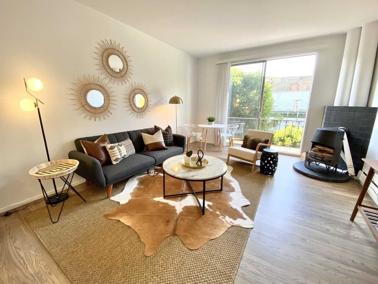 Charming, modern, UNFURNISHED 1bd, 2 blocks from Grant and Columbus Street, easy walk Downtown, to the Ferry Building or BART. Video walk-through: https youtu be nsMpH3_Aggo Unit features a spacious and open living/dining and kitchen with wood burning fireplace, private balcony and brand new kitchen. Kitchen features a large quartz breakfast bar, range, fridge, dishwasher, microwave and all new cabinets and flooring. The bedroom is charming and fits a queen sized bed and bedroom furniture (night stands and dresser). There is a large wall-to-wall closet and two additional large closets in the hallway. BONUS: HUGE shared deck with new furniture. Shared laundry in the building. Bike parking/ski/surfboard storage. Parking available $200 for designated space in shared garage (compact). Motorcycle parking available for $100. Quiet cat/dog ok. Shared laundry in the building. Bike parking/ski/surfboard storage. One months deposit. Available between now and within 30 days. Please email Licensed Agent Lisa Kim Jones lkjones@hill-co.com 415-515-9891 (cell)