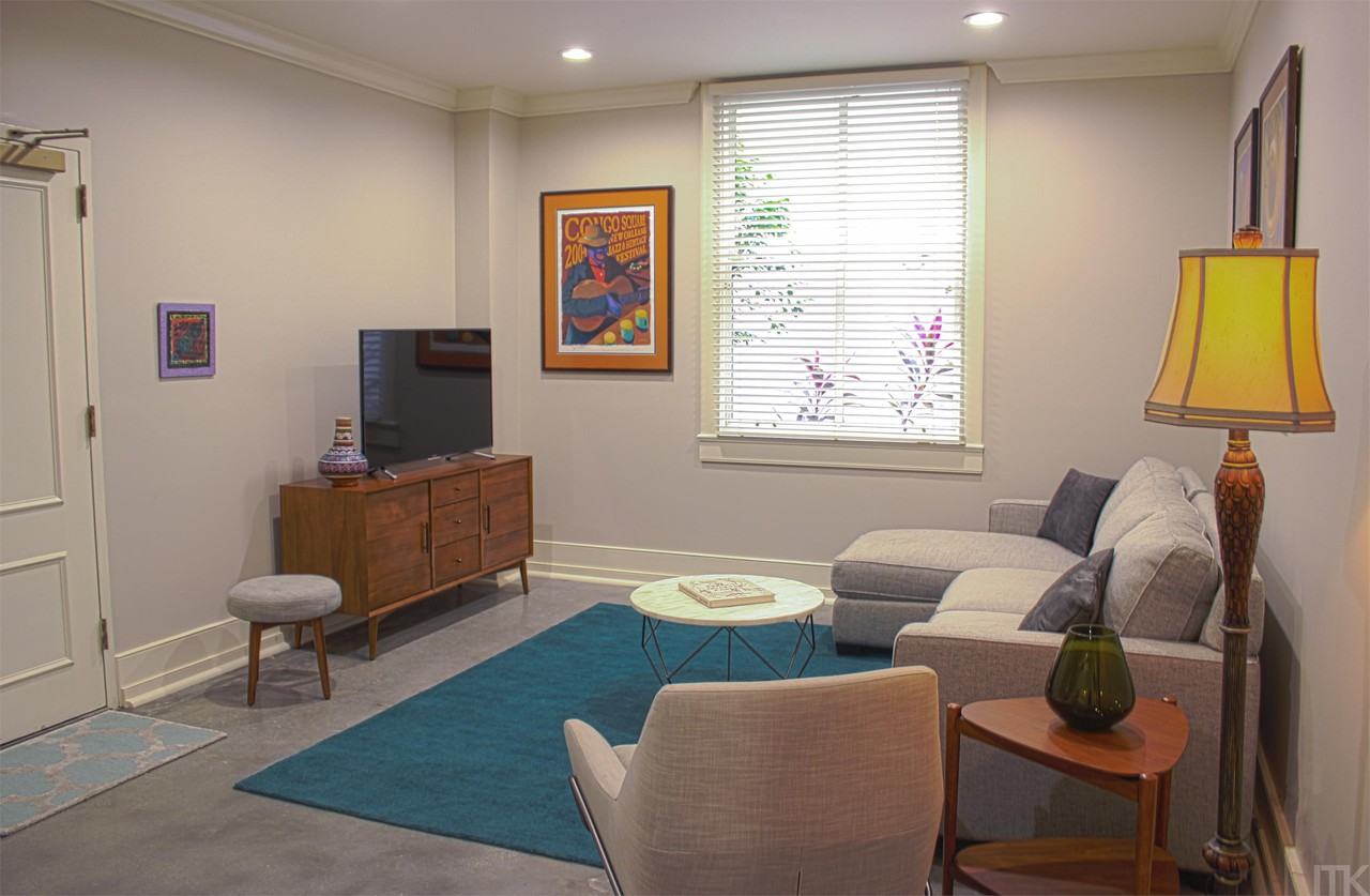 Fully furnished 3rd floor, sound attenuated, spacious Apartment overlooking the open air atrium. 1,500 sq. ft. of elegance with high ceilings, accent brick walls, polished cement floors, large laundry room with full size washer & dryer, 2 bedrooms, 2 bathrooms, spacious closets, living room/dining room, secure access along with a peaceful and private atmosphere. Step outside and walk to Canal St, CBD, the Mississippi River, French Market or dinner at a signature restaurant. If you decide to drive just use one of our two elevators, walk a few steps and use your access code to open the door and enter our gated private parking lot.** Our elevators are secure and not accessible by anyone but residents, maintenance, and guests. All of this is accessible from your new favorite place in the Quarter. ---------------------------------------------------------------------------------------------------------------------------------------------------------------------------------- -Central Heat/Air -Huge Bedrooms -Large living area/kitchen -Open concept layout -Washer/Dryer in apartment -Overlooks secluded atrium from the master and HOB Voodoo Garden from the living room ---------------------------------------------------------------------------------------------------------------------------------------------------------------------------------- **Adjacent parking available for additional monthly fee ---------------------------------------------------------------------------------------------------------------------------------------------------------------------------------- Check out our 360 degree tour https tourmkr com t3fTr2DWja?index=scene_3&hlookat=72&vlookat=0&fov=91 Commercial and Residential Building. Residences on 3rd and 4th floor, above the House of Blues