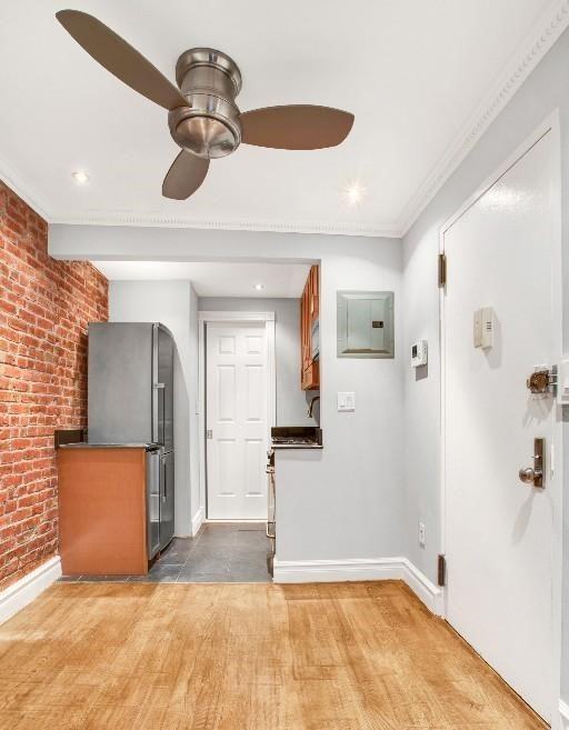 Welcome to your new home! This beautifully designed one-bedroom apartment offers the perfect balance of style and comfort. The hardwood floors throughout add a warm and polished touch to the entire space. The modern kitchen features custom cabinets and generous counter space, making meal prep a breeze. The living area is expansive, offering plenty of room to relax, entertain, or create a dedicated workspace. The bedroom comfortably fits a queen-sized bed and comes with ample closet space for all your storage needs. The renovated bathroom includes a sleek shower/tub combo for added convenience. At Real New York, were redefining the moving experience with a team of experts who truly understand the NYC market. With over 1,000 exclusive listings and access to 100% of available apartments, were committed to helping you find your perfect homewhether in a full-service building or a charming walk-up. Fees includes $20 application Fee, 1 months rent, and 1 month security deposit.