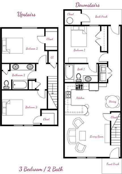 Creekside Villas, located on the corner of Central Ave. and 18th Street, has the following floor plans: 1 bedroom 1 bath flat , 2 bedroom 1 bath flat, 2 bedroom 1.5 bath townhouse, 2 bedroom 2.5 townhouse and 3 bedroom 2 bath townhouse. These units are furnished with refrigerator, stove, dishwasher and washer dryer hook-up. The rent includes cable TV, high-speed internet, water, sewer, trash, and lawn maintenance. Pets under 20 pounds are allowed. No more than two pets are permitted and there is a $75 pet fee per pet and a small rent increase.