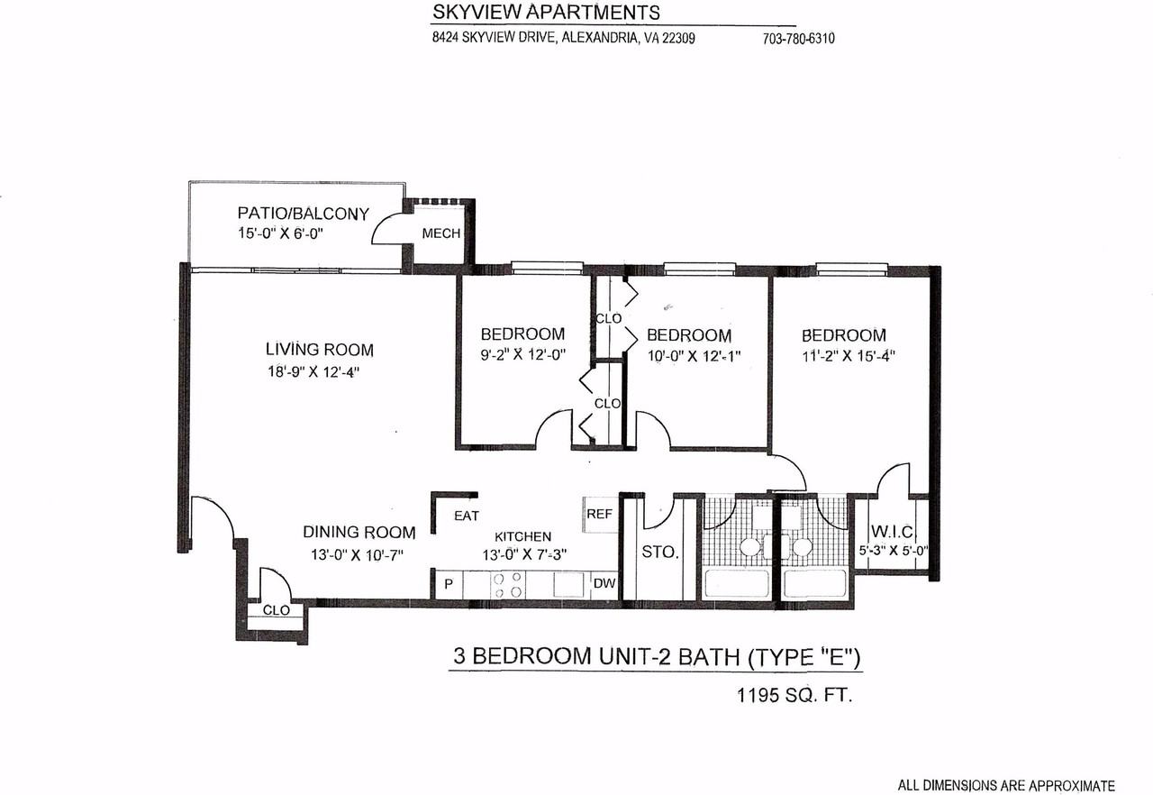 This will be a type E floor plan. The kitchen will have honey oak cabinets, black appliances, and granite counters. There will be gray carpeting throughout the apartment with luxury vinyl plank flooring at the entrance foyer and kitchen. Skyview apartment community is situated in a beautiful residential neighborhood conveniently located off Richmond Highway in Alexandria, VA. Skyview is a wonderful place to live and has a fantastic reputation. The community is located approximately 5 miles south of Alexandria city limits and just minutes from Fort Belvoir, Fairfax County Parkway, and George Washington Parkway.