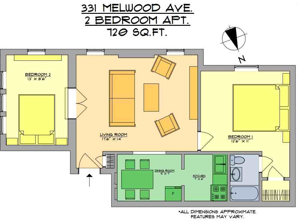 2-bedroom apartments at 331 MELWOOD AVENUEAPT 1 #331-01 cost about 22% less than the average rent price for 2-bedroom apartments in North Oakland.
