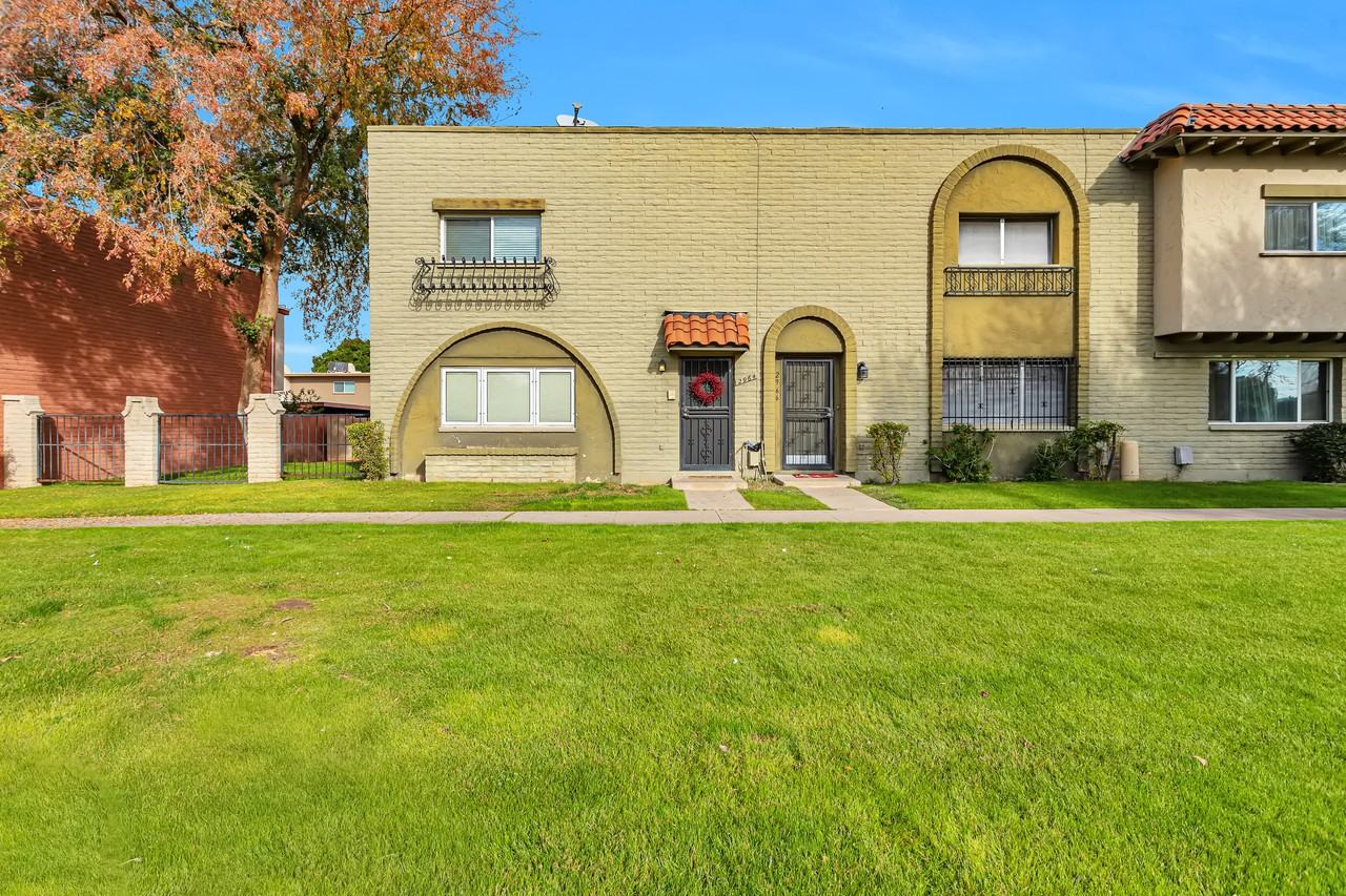 Coming soon! Amazing 2 bedroom plus Loft/Den, located in prime Phoenix location. Private corner unit with two covered and one uncovered assigned parking. Highly desirable end unit that is move-in ready! Lush grass in front. New custom flooring. Updated powder room downstairs. Eat-in kitchen has an abundance of white cabinets, granite counters, center island, SS appliances, Sliding barn door covers the stackable washer & dryer. Both bedrooms have ceiling fans, the loft and bedrooms have laminate floors . Full bath upstairs with extra deep soaking tub. A great brick paved covered patio, storage shed, built up planters and new locking gate to the parking. Community pool & spa. Close proximity to freeways, shopping and great Phoenix hotspots. Don't miss this rare find. One Time Admin Fee: $300, Pet Deposit: $300/pet (if applicable), Service Fee: 2%. $39/month Resident Benefits Package, Helping Heroes Discount Available!