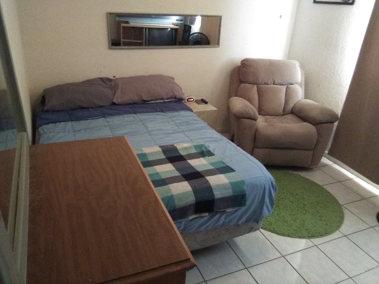 •Master Bedroom is 225 sq. feet: 195 Square feet of floor space plus 30 sq. feet of closet space. •All tile flooring. •Comes w/a full-size bed: Spring mattress, Box Spring & Frame. •Washer & Dryer included. •All Utilities Included, FREE WI-FI & NETFLIX! Electric, Water, Sewer, Trash, Recycling. •FREE WI-FI & NETFLIX! •Sliding glass doors that lead to... •Patio with patio furniture •Private fenced in backyard with gate. •Spacious kitchen area. PETS: no large dogs (Pitts, Germ. Shepherds, Rotts, Dobies, etc.) & it will require a pet deposit which the amount will have to be further discussed. •Washer & Dryer included inside home. •2 Car Driveway for parking. •Simple rules, simple life...peaceful.