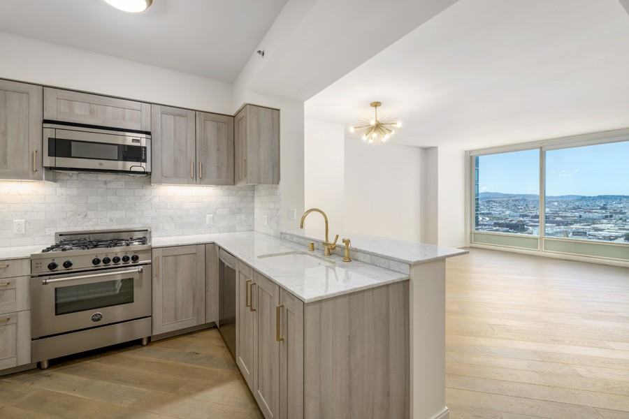 Breathtaking City Views in San Francisco's iconic 5 star tower, The Harrison. Enjoy expansive floor to ceiling windows and luxury finishes including wall-to-wall oak plank flooring, Carrara marble accents, timeless brass fixtures, a sleek and modern chef's kitchen with premium cabinetry, One car parking and private storage complete this luxury home. 5 star amenities include onsite concierge, valet, fitness center, outdoor heated pool, BBQ area, outdoor fireplace, and the sensational Uncle Harry's sky lounge on the 49th floor. Enjoy convenient access to the financial district, top restaurants, local shops and bars, major freeways and public transportation. Enjoy luxury living at its finest!