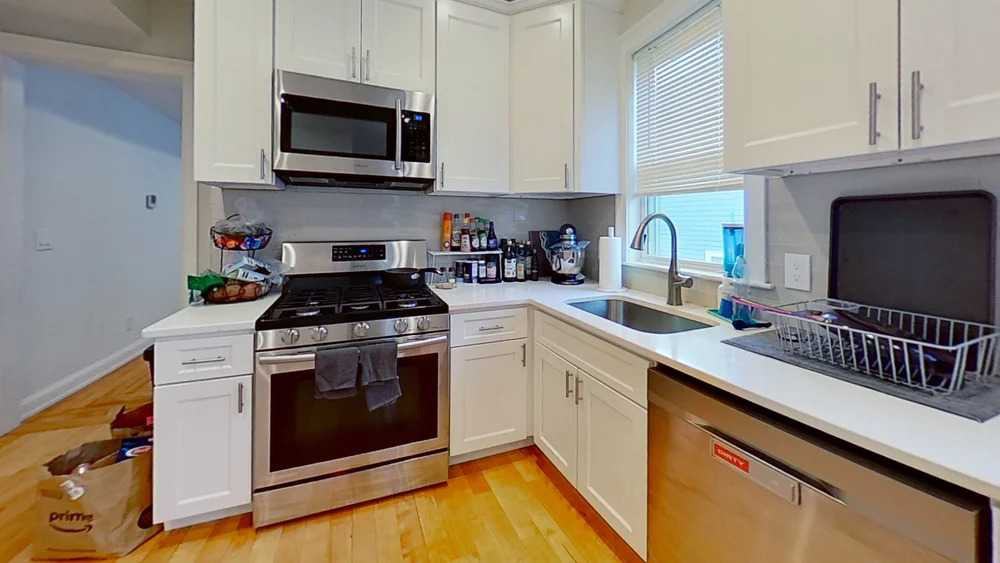 Please inquire for more information! [UNIT] Renovated less than 2 years ago. Beautiful 5 bedroom 2 full bath duplex unit on the second and third floor in a multi family house located near Oak Square area in Brighton. Unit features a living room and modern kitchen with quartz countertops and stainless steel appliances. Gleaming hardwood floors throughout. Private washer/dryer in the unit. Central air. Front porch and large shared backyard. Off-street parking available. Easy access to Hunnewell Park public transportation stores and restaurants. 2 tandem parking available for rent. Bus: 57 Tremont St opp Cufflin St (0.23 mi) Bus: 64 Faneuil St @ Bigelow St (0.34 mi)